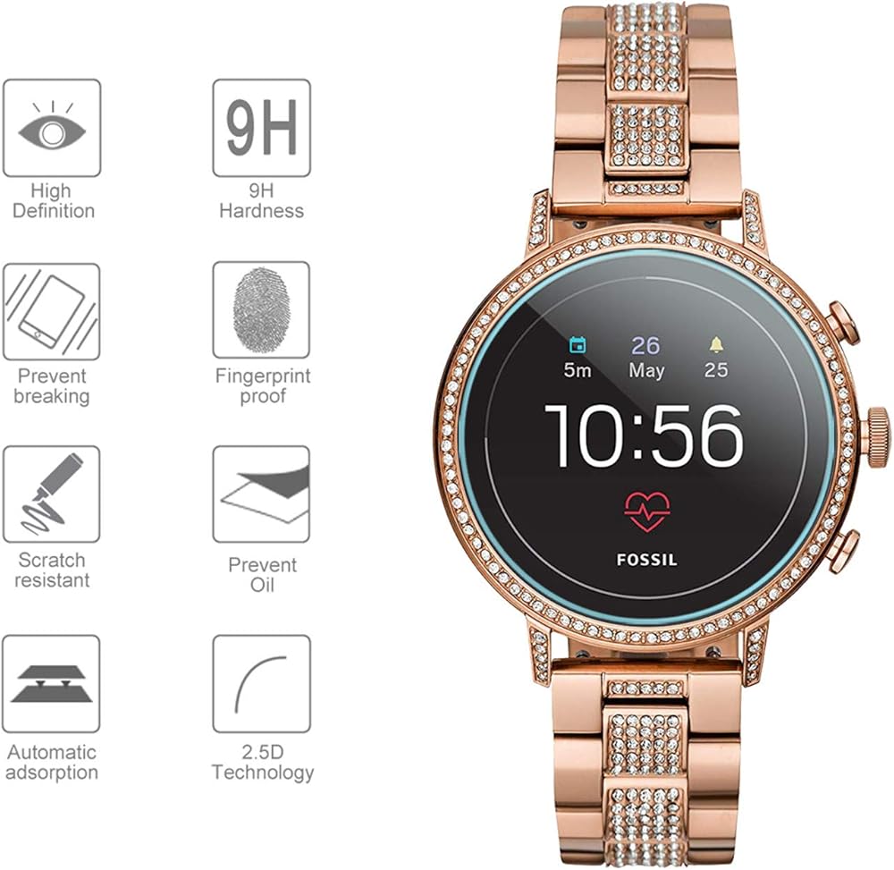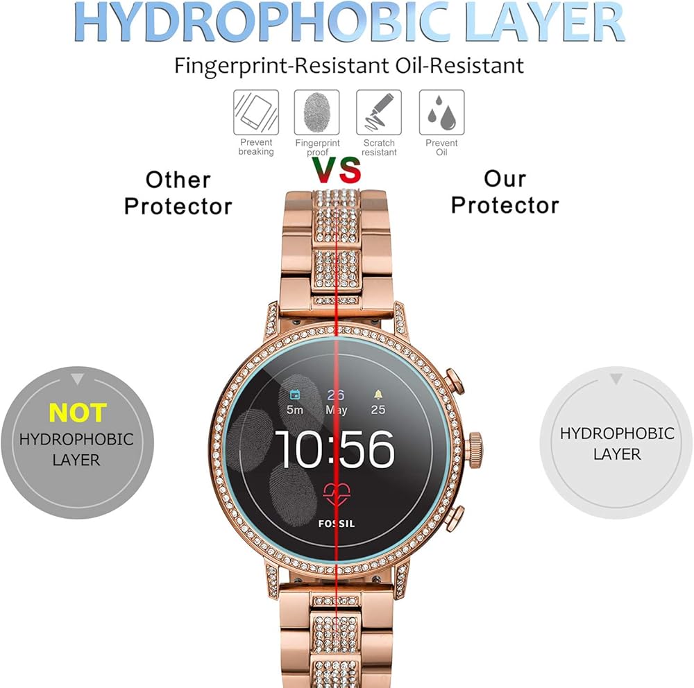 • 【الموديل المتوافق】مناسب تمامًا للساعة الذكية فوسيل كيو فينتشر اتش ار الجيل الرابع، يغطي شاشة اللمس بالكامل