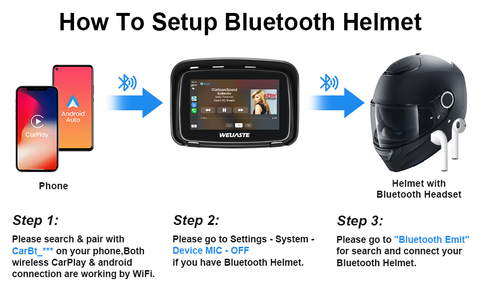 【بلوتوث مزدوج مدمج】وحدة GPS للدراجة النارية مع اتصال بلوتوث مزدوج مدمج، قم بإقران هاتفك بشاشة اللمس carplay عبر البلوتوث، وقم بإقران الوحدة بخوذة/سماعة البلوتوث الخاصة بك، ثم يمكنك ضبط مستوى الصوت/تبديل الأغاني وعمل مكالمات بدون استخدام اليدين بواسطة خوذتك أو سماعة الأذن. استمتع بحرية الاتصال السلس والوظائف المحسنة أثناء الركوب.