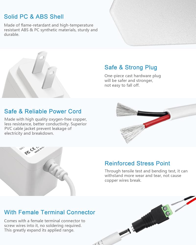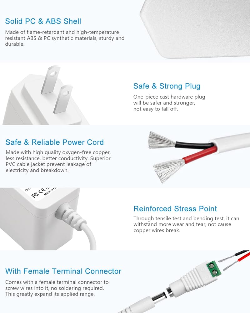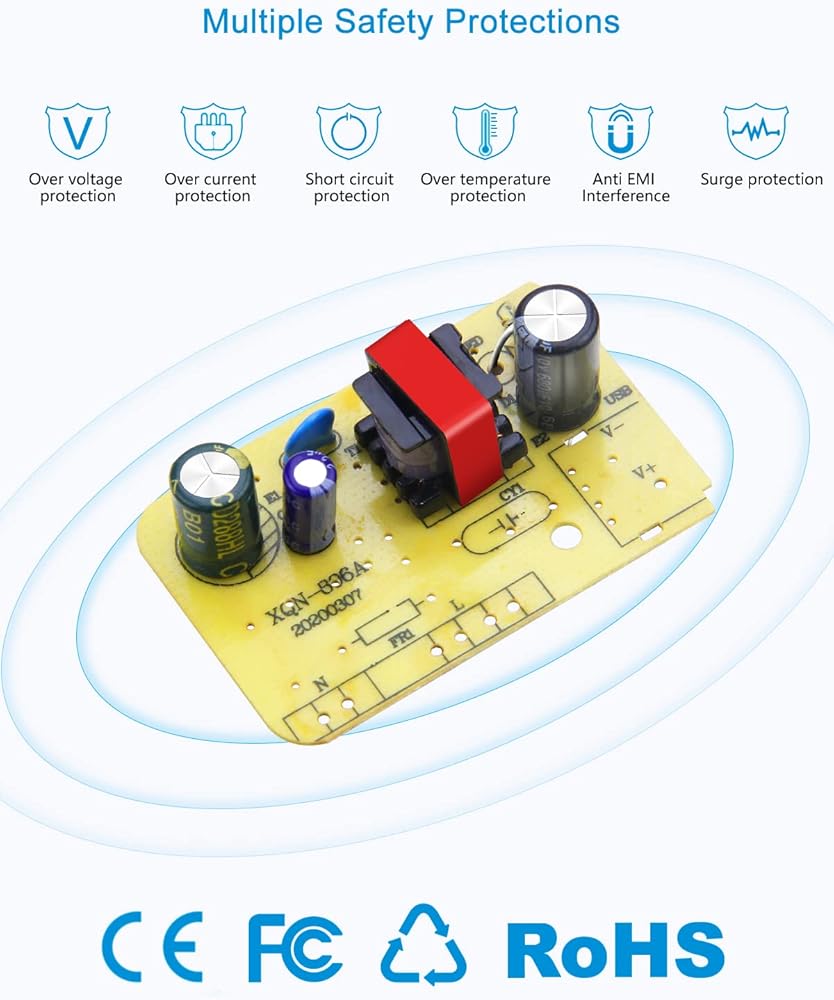 【ميزات السلامة】 لقد صممنا محول الطاقة 5 فولت هذا مع وضع السلامة في الاعتبار. نظام حماية متعدد مدمج: قطع تلقائي للتيار الزائد، قطع للجهد الزائد، قطع لدرجة الحرارة الزائدة، قطع للدائرة القصيرة. لا ضوضاء، لا خطر الحريق. حمايتك وجهازك بشكل جيد للغاية.