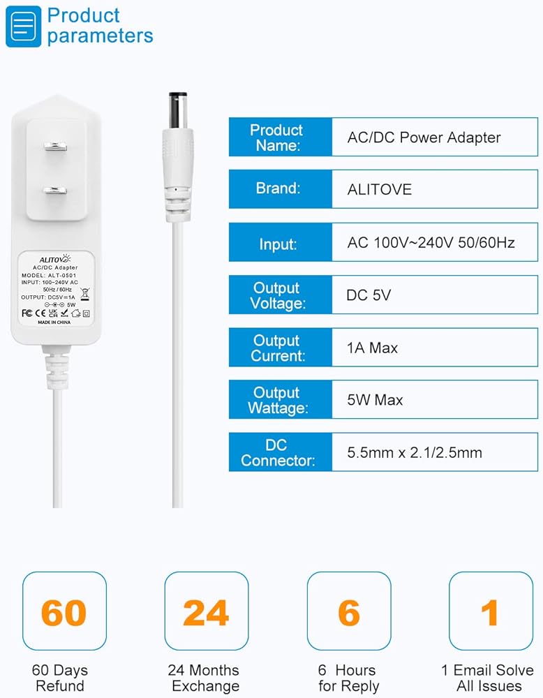 【 محول طاقة 5 فولت 1 أمبير 】الإدخال: 100 فولت-240 فولت 50/60 هرتز؛ الإخراج: 1A 5W كحد أقصى @ 5V DC؛ يعمل بشكل جيد مع أجهزة 5 فولت التي تسحب أقل من 1 أمبير (1000 مللي أمبير) 5 وات، مثل 200 مللي أمبير، 400 مللي أمبير، 500 مللي أمبير، 800 مللي أمبير، 1000 مللي أمبير. إذا كنت تستخدمه لتشغيل الجهاز أكثر من 1 أمبير 5 وات، فلن يعمل. لا تفرط أبدًا!