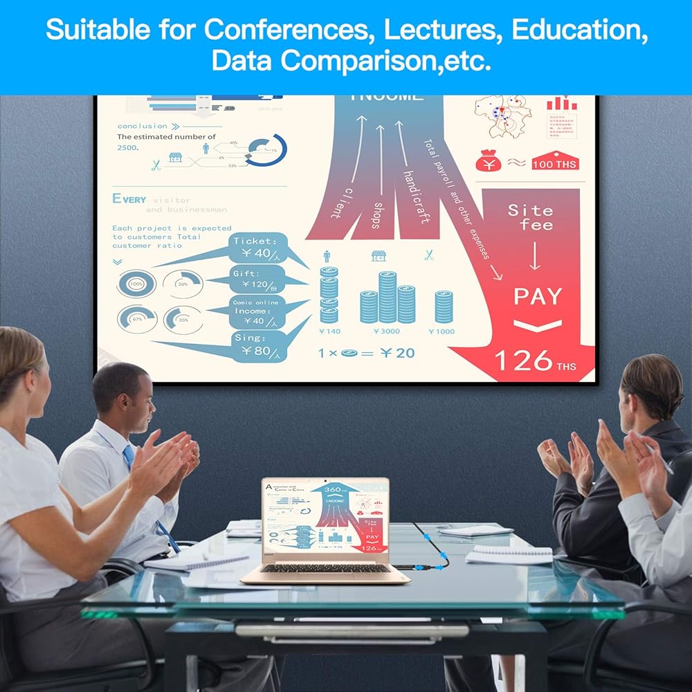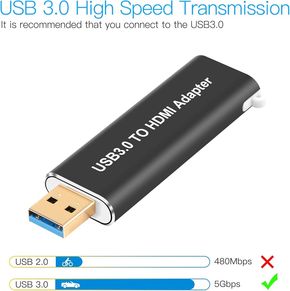 🎈دقة 1080P HD: يتميز USB 3.0 بعرض نطاق ترددي عالٍ (5 جيجابايت في الثانية)، والذي يمكنه نقل فيديو عالي الدقة من الكمبيوتر إلى تلفزيون عالي الدقة أو الشاشة أو جهاز العرض. يدعم دقة تصل إلى 1920 × 1080 عند 60 هرتز. (يدعم فقط منافذ USB 3.0، وليس منافذ USB 2.0).