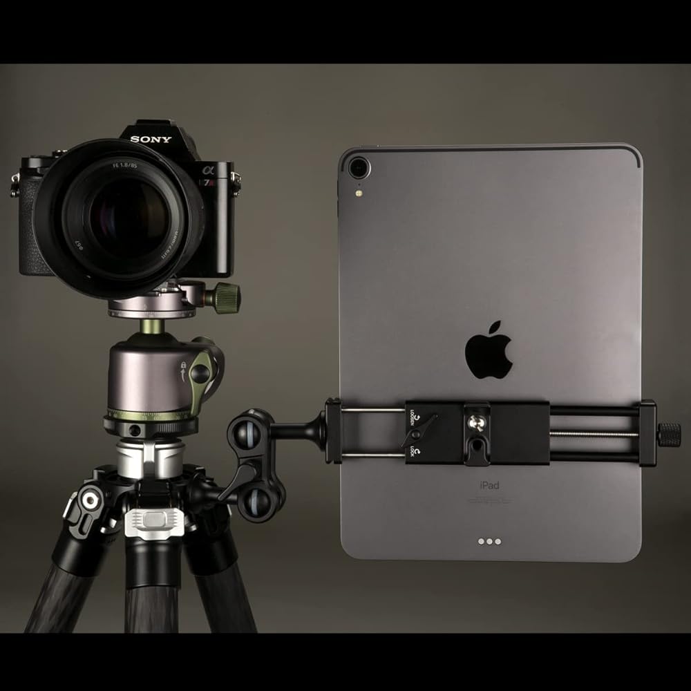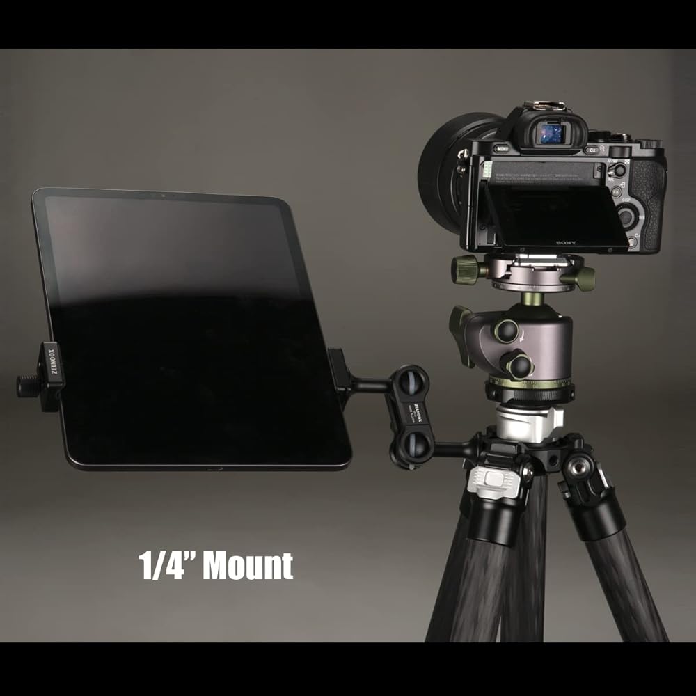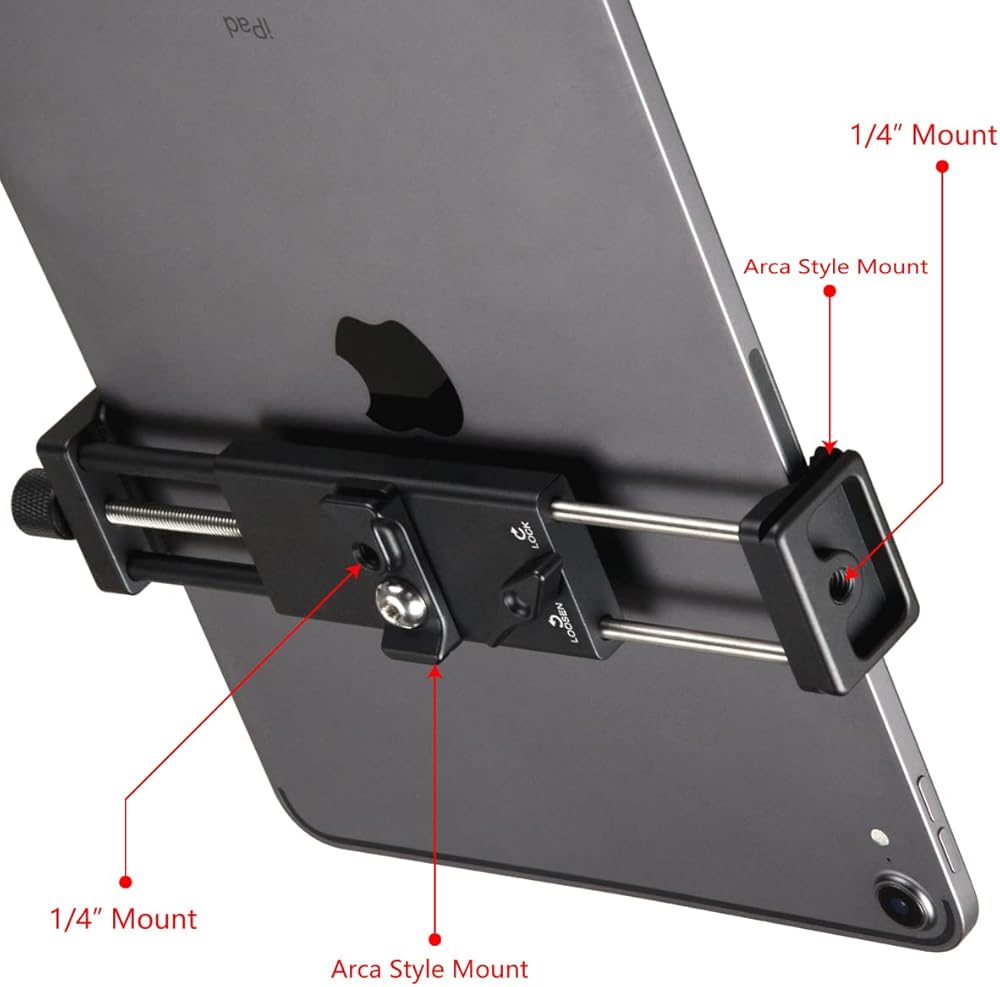 【تركيب فتحة برغي 1/4 انش】: فتحات براغي عالمية 1/4 انش في الجزء السفلي والخلفي من الدعامة، يمكنك تركيب أي ملحق على التابلت أو على أي جهاز باستخدام براغي 1/4 انش.