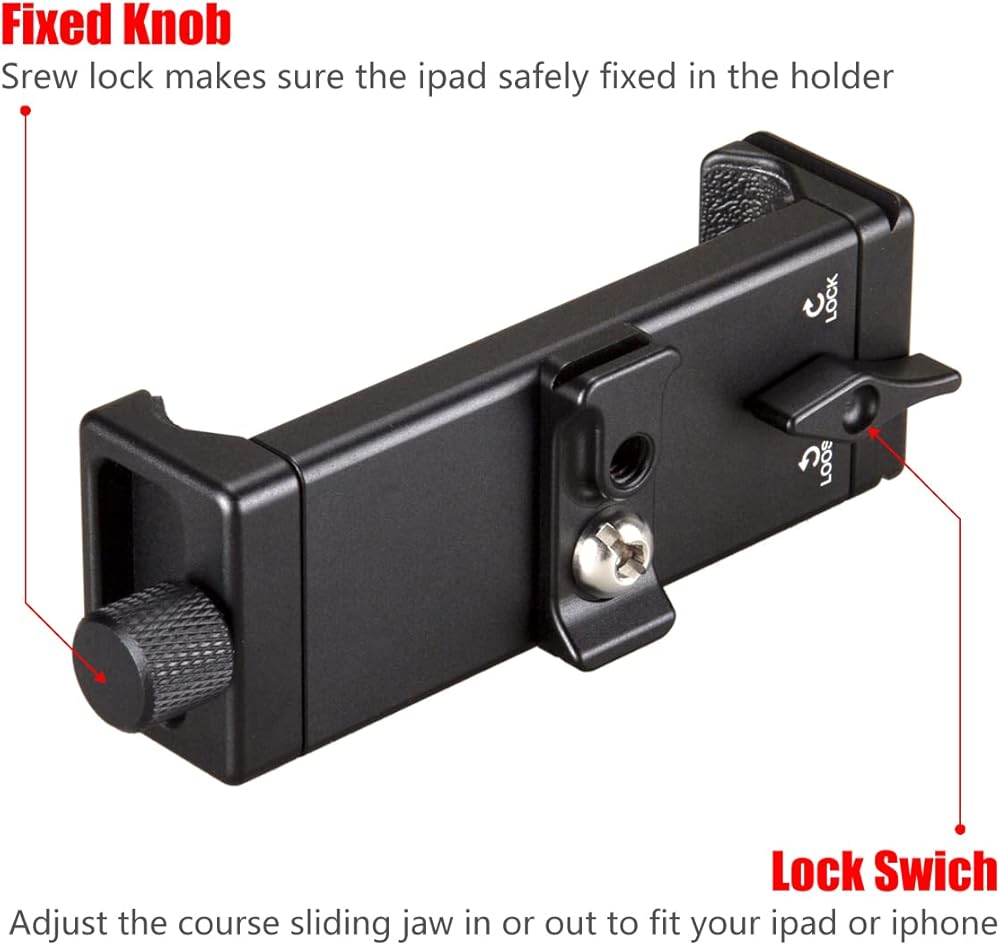 【فك سريع الحامل ثلاثي القوائم】: مع الأخاديد المتشابكة في الجزء الخلفي والسفلي من المشبك، فإن الأخدود المتوافق متوافق مع اركا سويس، الأشياء الصحيحة حقًا، مما يسمح لك بتركيب جهاز ايباد الخاص بك أو تحريره بسرعة على حامل ثلاثي.
