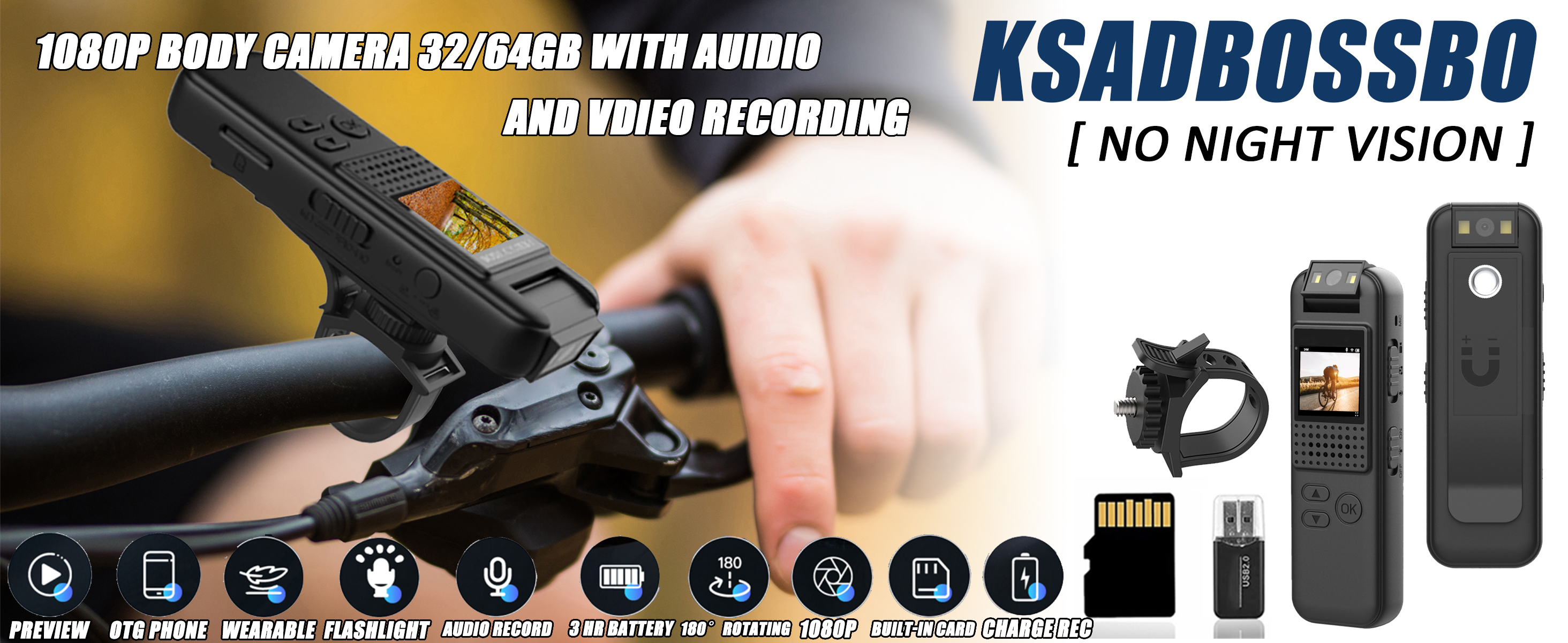 【تسجيل فيديو بدقة 1080 بكسل بنقرة واحدة 】 تجمع كاميرا الجسم Ksadbossbo بين الزجاج البصري عالي الجودة وتقنية الطلاء متعدد الطبقات لضمان جودة التسجيل، ويمكن التقاط الفيديو بدقة ووضوح من خلالها. من خلال مستشعر 1080P، لا داعي للقلق بشأن فقدان أي تفاصيل ضمن اللقطات التي يبلغ حجمها 2 مليون بكسل. ولا داعي للقلق بشأن حفظ مقاطع الفيديو باستخدام البطاقة المدمجة بسعة 64 جيجابايت. يمكن أن يساعدك تسجيل الفيديو بنقرة واحدة على بدء التسجيل على الفور بغض النظر عن الوقت الذي تحتاج إليه.