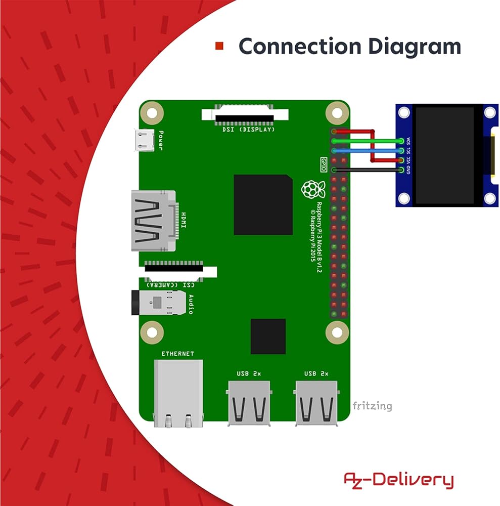 التوافق: يتطلب التحكم عبر واجهة I2C أربعة دبابيس توصيل فقط. توفر الشاشة أحادية اللون اتصالاً سهلاً ومتوافقة مع راسبيري باي عبر واجهة I2C