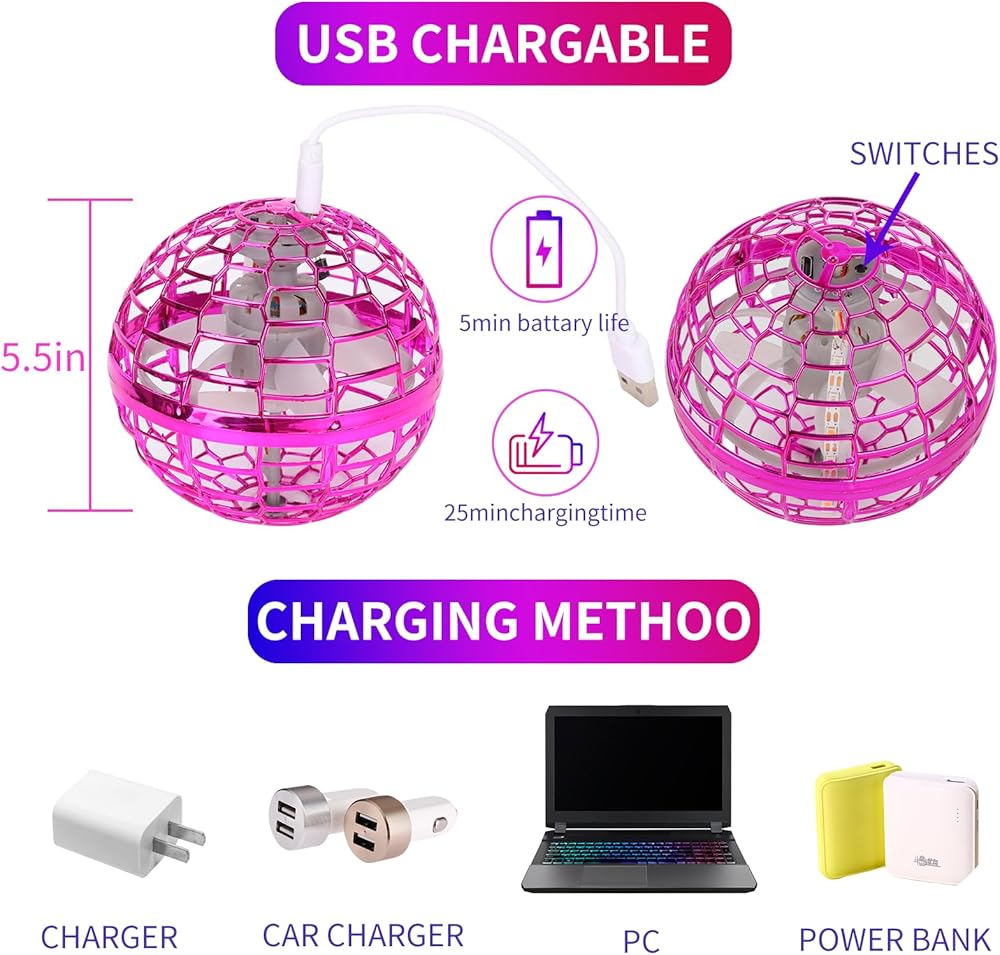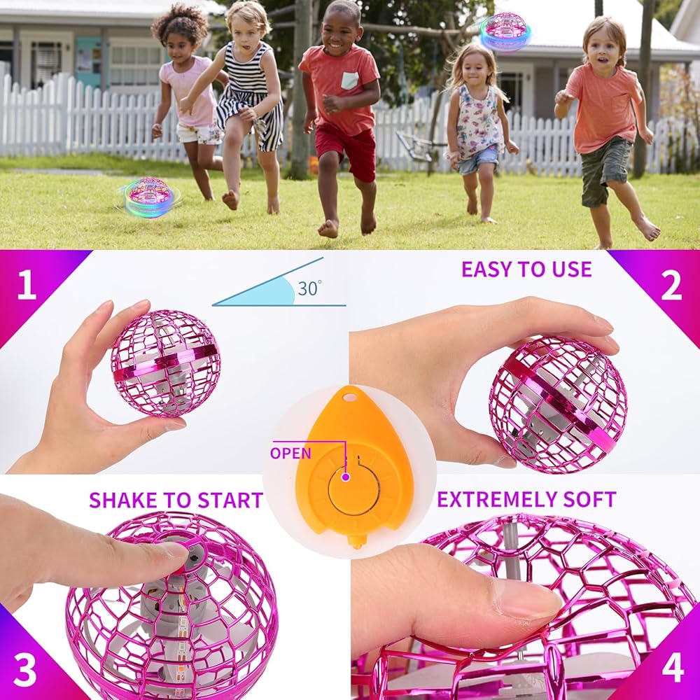 ألعاب أطفال كرة دوارة طائرة سحرية لعيد الميلاد LED كرة أرضية عائمة في الهواء الطلق لعبة داخلية مع وحدة تحكم عن بعد لاسلكية بدون طيار كرة تحوم على شكل كرة للأطفال هدية للأعمار 3 4 5 6 7 8 9 10+ (وردي)