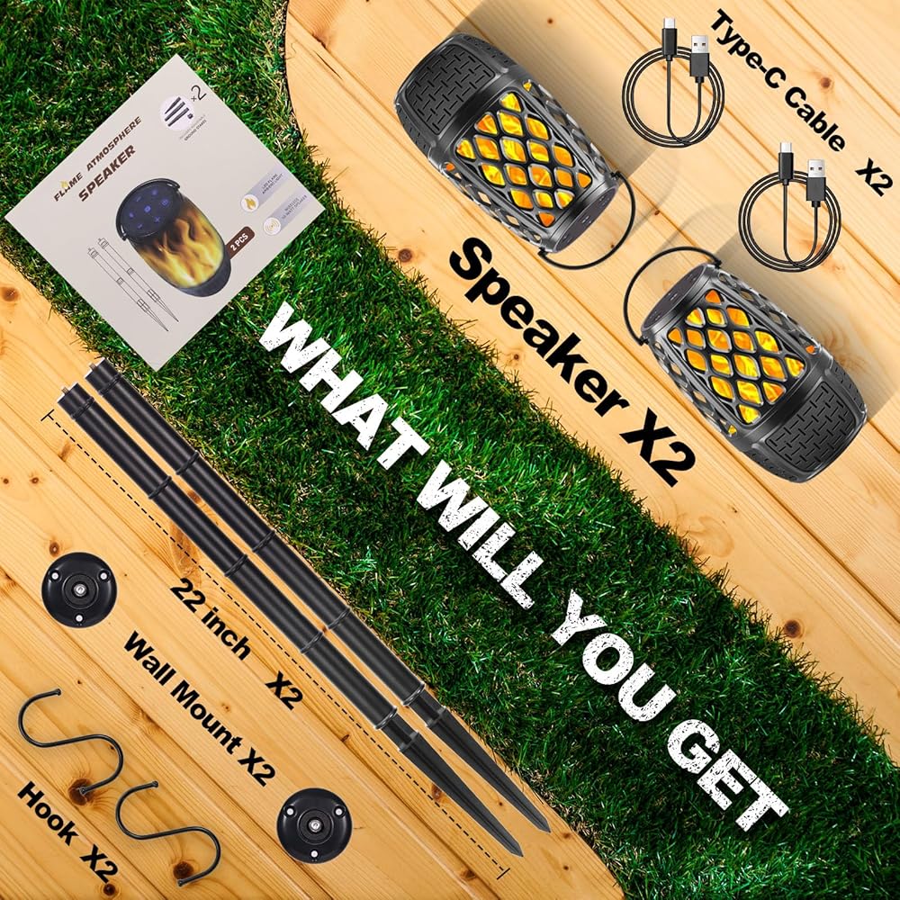♬🔥مكبر صوت بلوتوث لهب LED متعدد الوظائف: تأتي مكبرات صوت بلوتوث المحمولة مع أوتاد أرضية قابلة لضبط الارتفاع، وخطاف تعليق على شكل حرف S، ومثبت على الحائط، ويمكنك استخدام مكبر صوت ضوء اللهب كمكبر صوت مكتبي، أو لصقه على الأرض كمشاعل خارجية أو خيار كمصباح أجواء للتعليق داخل المنزل، أو تعليق فرع شجرة. إكسسوارات رائعة لحوض الاستحمام الساخن وحمام السباحة والجولف والشواء والمطبخ وحفرة النار والحديقة والفناء والمركبات الترفيهية والشاطئ.