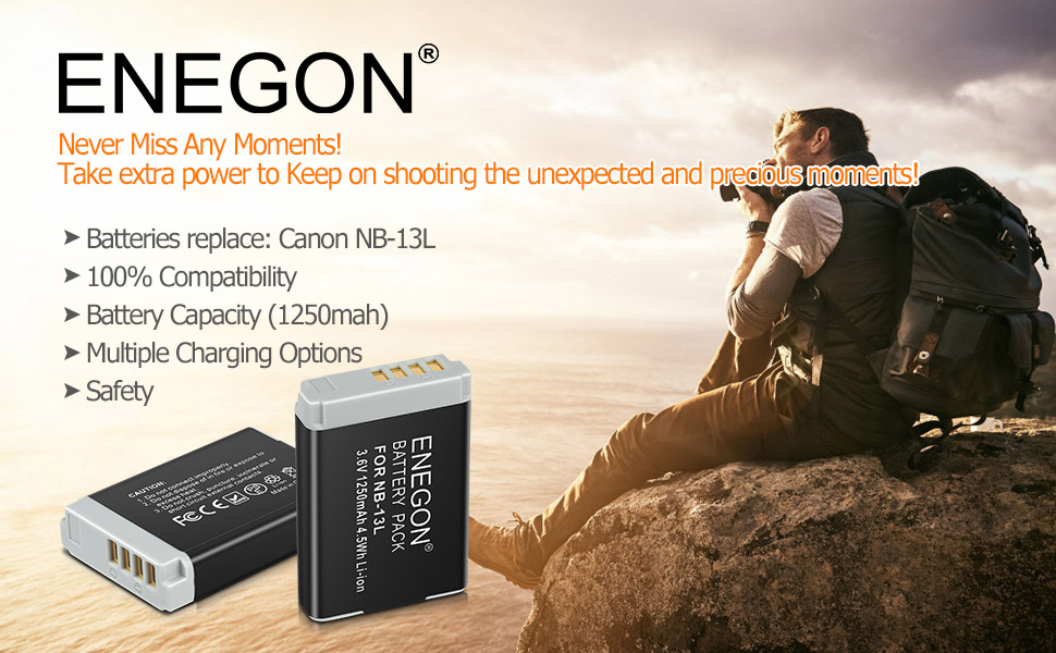 【سعة بطارية قوية】 الخلايا الممتازة تصنع بطاريات عالية الجودة. يمكن أن توفر بطارية NB-13L المزيد من الطاقة لمزيد من اللقطات وتسجيل فيديو أطول بناءً على سعة البطارية 3.6 فولت 1250 مللي أمبير في الساعة.
