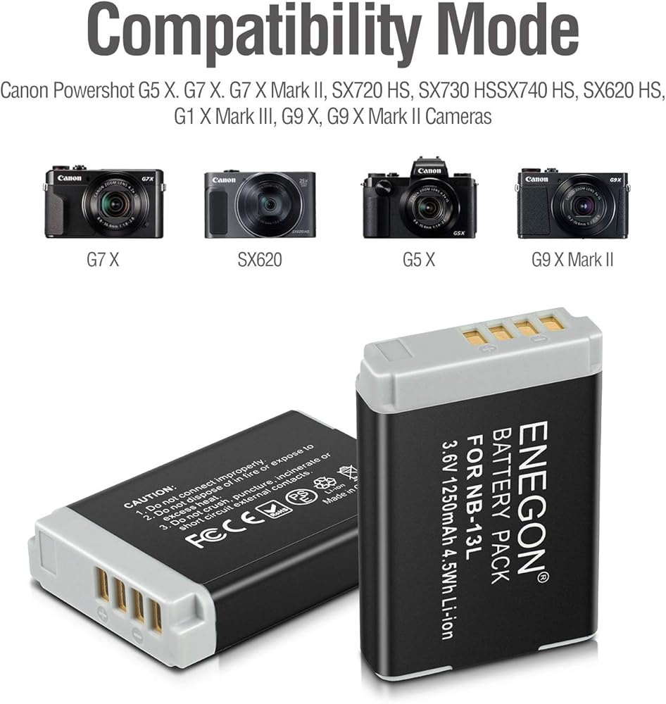 【متوافقة تمامًا】 بطاريات ليثيوم أيون البديلة NB-13L متوافقة تمامًا مع كاميرات كانون باور شوت G5X وG7X وG7X مارك II وSX720 HS وSX730 HS وSX740 HS وSX620 HS وG1 X مارك III وG9 X وG9X مارك II بدون تأثير الذاكرة. (فك التشفير).