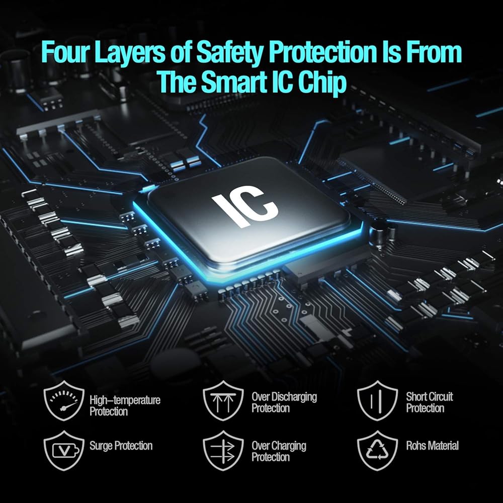 【السلامة】 خلية البطارية معتمدة من الاتحاد الأوروبي، وتتميز بأربع طبقات من الحماية (الشحن الزائد، قصر الدائرة، درجة الحرارة العالية، الحماية من اندفاع التيار الكهربائي) مع هيكل عالي الجودة ومقاوم للحريق.