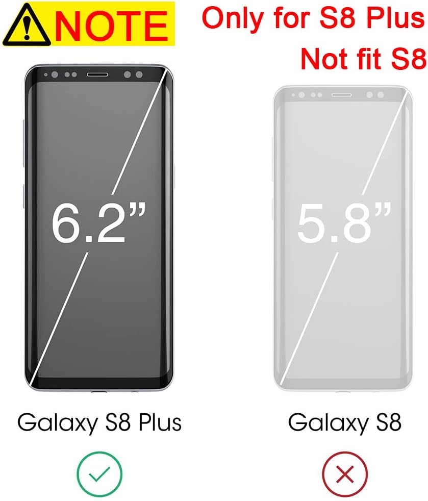 【ملاحظة: غير متوافق مع سامسونج S8 !!!!!! !】[مناسب للجراب] مصمم خصيصًا لهاتف سامسونج جالاكسي S8 بلس، متوافق فقط مع سامسونج جالاكسي S8 بلس. تتوافق مع معظم حافظات الهاتف.