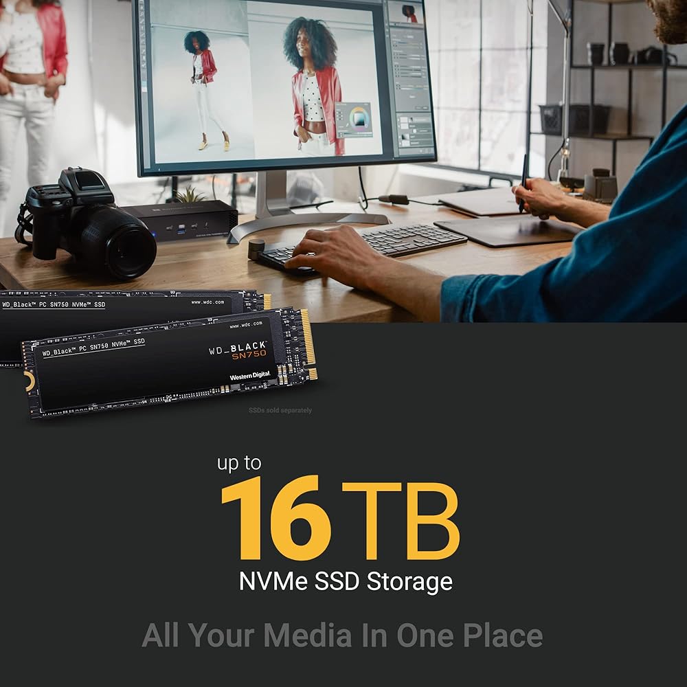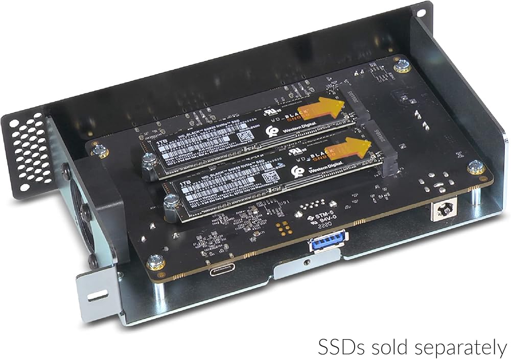 مقبسين M.2 NVMe SSD - أضف ما يصل إلى 16 تيرابايت من التخزين بالداخل (تباع SSD بشكل منفصل)؛ تحقيق سرعات نقل البيانات تصل إلى 3000 ميجابايت/ثانية (تم تكوين SSD كمجموعة RAID 0)