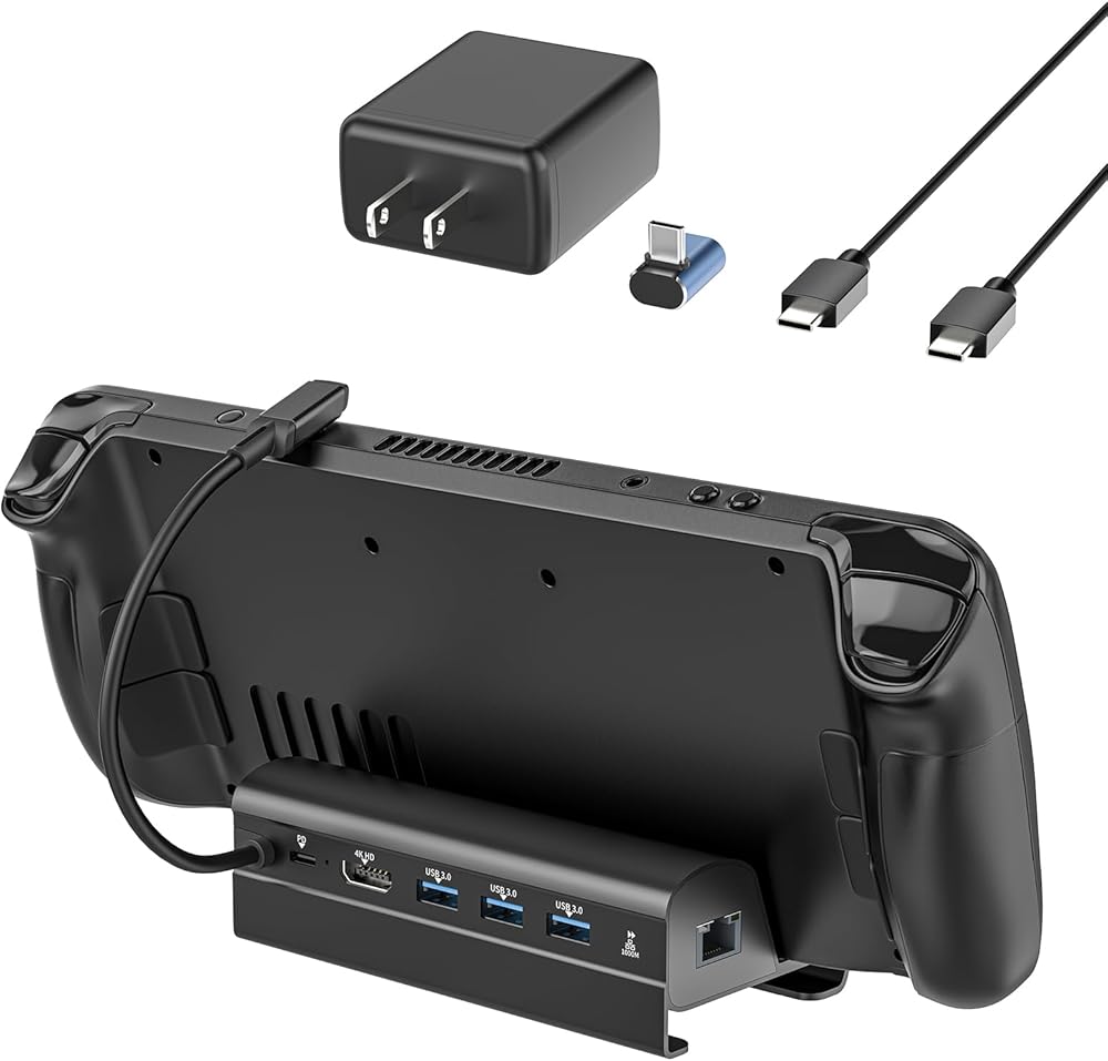 【قاعدة شحن 6 في 1 لسطح ستيم】تأتي مع شاحن بي دي 45 واط، ومخرج HDMI 4K عند 60 هرتز، ومدخل جيجابت ايثرنت، وثلاثة منافذ USB-A 3.0 ومنفذ USB-C للشحن، مما يتيح لك استكشاف طريقة جديدة للعب مع ستيم ديك. 【يرجى الملاحظة】لا يتوافق مع حافظة الحماية المزودة بمسند، يرجى التأكد من أن سمك الحافظة الواقية أقل من 2 ملم.