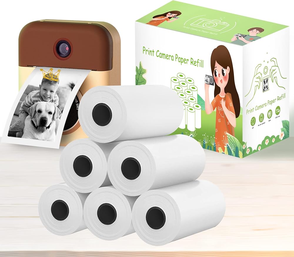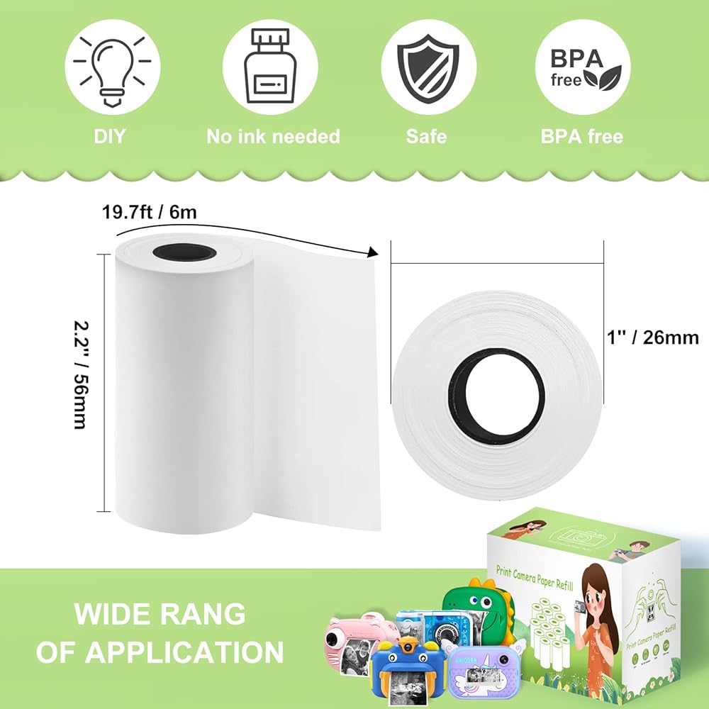 ورق كاميرا 6 لفات لفافات لكاميرا Kidizoom Print، ورق طباعة كاميرا 5.88 سم × 2.54 سم متوافق مع كاميرا Vech Dragon/MiniBear/عبوة إعادة تعبئة ورق كاميرا مطبوعة، ورق لكاميرا الأطفال الفورية