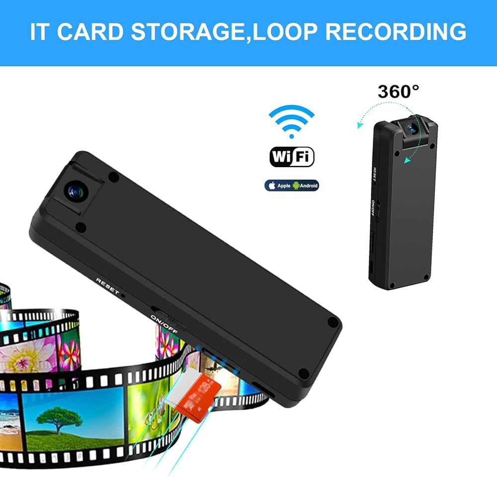 • 【تخزين كبير بسعة 128 جيجابايت وتسجيل حلقة】تدعم الكاميرا بطاقات 4G-128G (يتطلب شراء إضافي). عندما يتم الوصول إلى حد التخزين في الذاكرة، تقوم سترتنا المقيدة تلقائيًا بالكتابة فوق أقدم التسجيلات وتكرار المقاطع الجديدة. كاميرا صغيرة واي فاي تخفي دقة فيديو 1080P (1920*1080) عالية الدقة لتسجيل صور أكثر وضوحًا.
