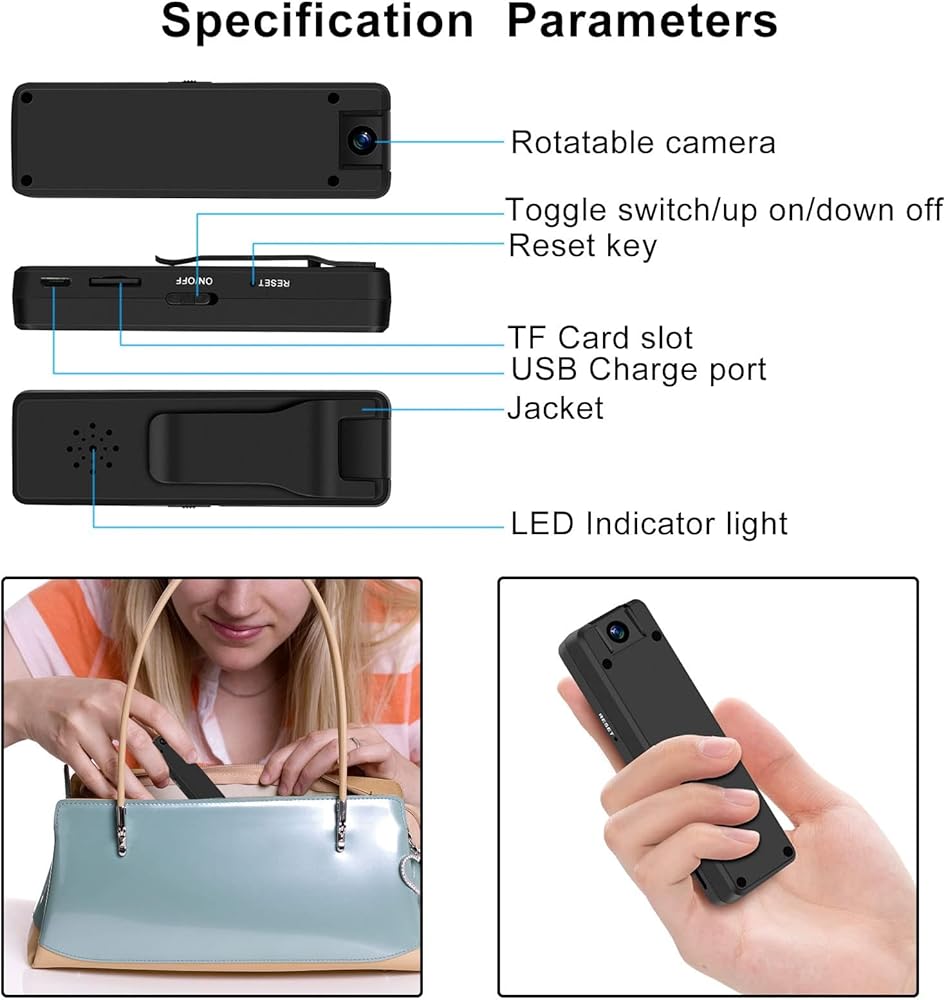 • 【كاميرا جسم صغيرة متعددة الوظائف】تحتوي كاميرا القلم الصغيرة هذه على كاميرا صغيرة بدقة 1080 بكسل عالية الدقة مع صوت وعدسة زاوية واسعة 180 درجة. حجم صغير وتصميم عدسة ممتاز. يمكن استخدام هذه الكاميرا الخفية في أي مكان تقريبًا، سواء كان ذلك في منزلك أو مكتبك أو مستودعك أو زاوية الفناء الخلفي أو زاوية المتجر. ويمكن حتى استخدامها ككاميرا سيارة أو كاميرا جوية. يمكن بسهولة قص تصميم المشبك الموجود في الخلف في الجيب/الياقة/حقيبة اليد أو استخدامه كقارئ بطاقة USB micro SD.