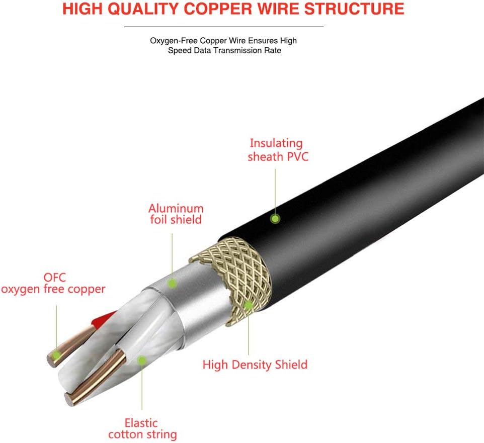 - نحاس عالي الجودة خالٍ من الأكسجين (OFC) لرفض ومرونة EMI وRFI بشكل فعال.