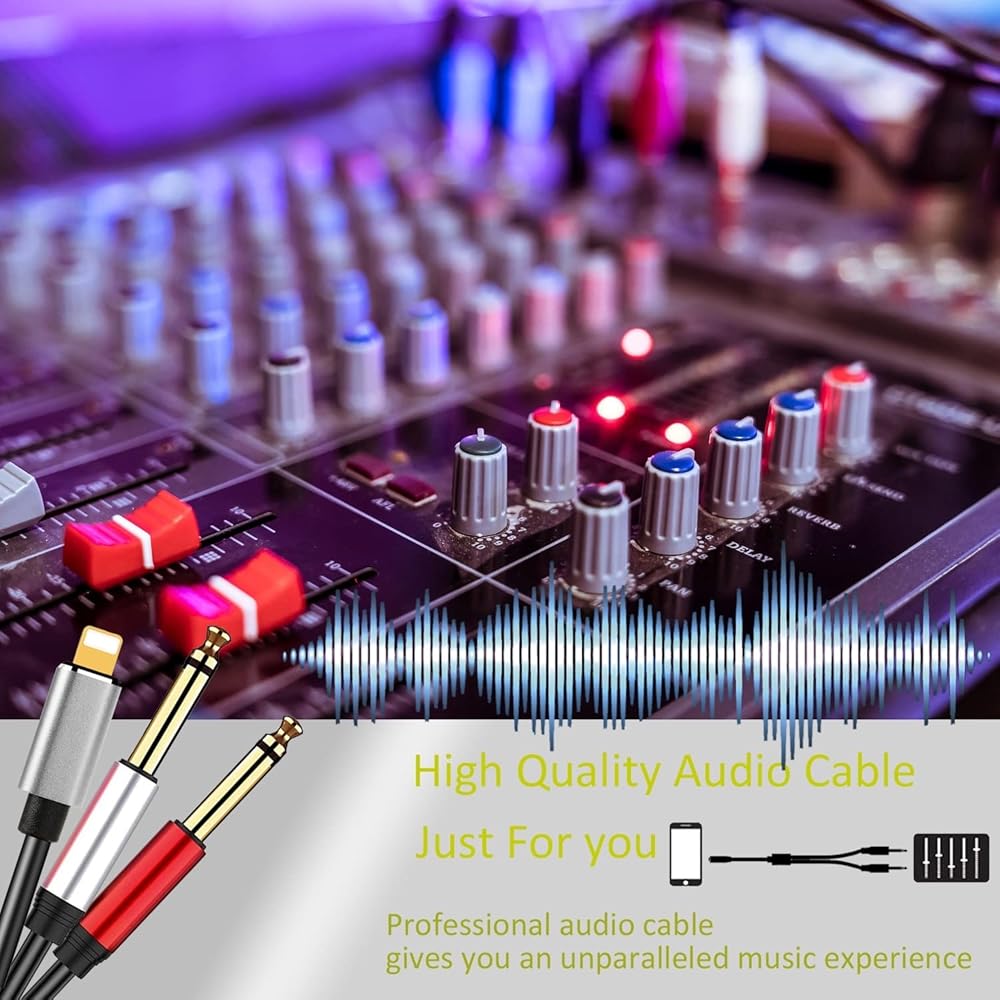 【Wide compatibility】:The iOS port to dual 6.35mm male 1/4 inch auxiliary jack adapter cable. It compatible with multiple devices:Such as iPhone iPad Pod connect to a 6.35mm audio cord,output to amplifiers, speakers, headphones, home theater,Guitar,DVD/VCD, mixing console tuning Sound table.Support for systems after version iOS10.Don't worry about system updates.