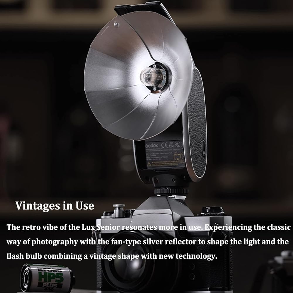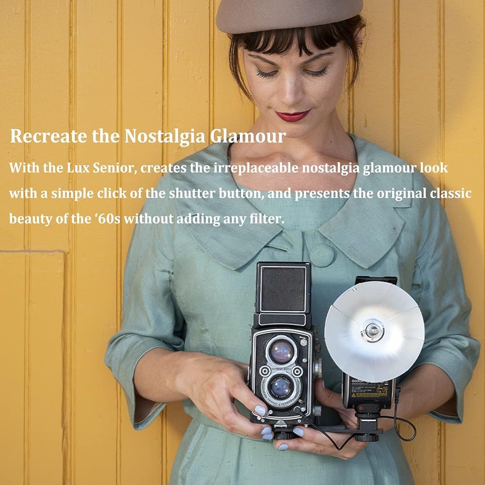 👍【Vintages in Use】The retro vibe of the Lux Senior resonates more in use. Experiencing the classic way of photography with the fan-type silver reflector to shape the light and the flash bulb combining a vintage shape with new technology.