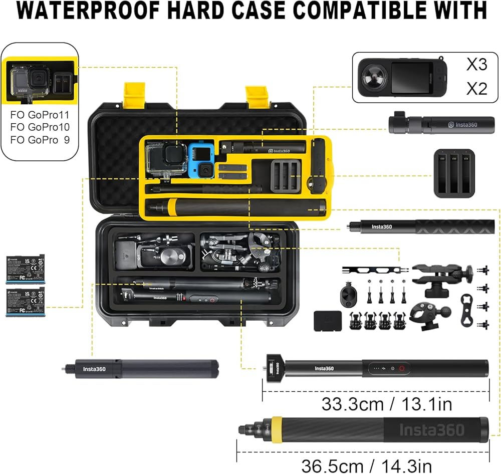 【تصميم مخصص】حافظة صلبة يتيث مصممة خصيصًا لـ Insta360 X3 / Insta360 ONE X22/ جو برو هيرو 11 / 10 / 9 وغيرها من الملحقات.