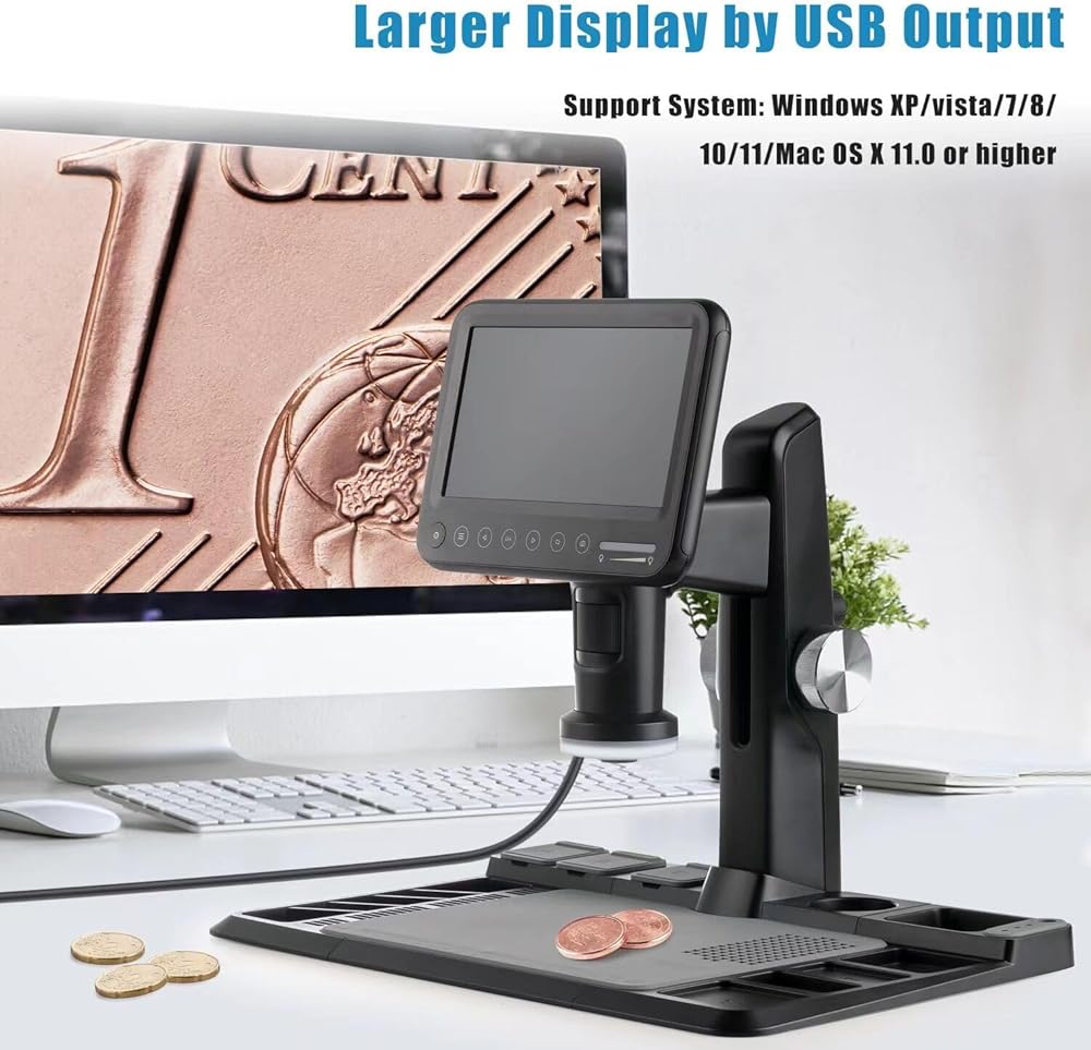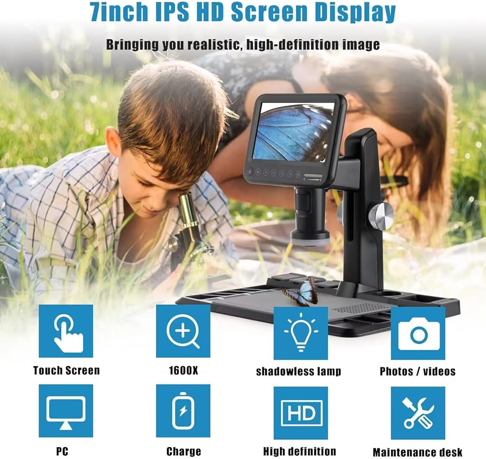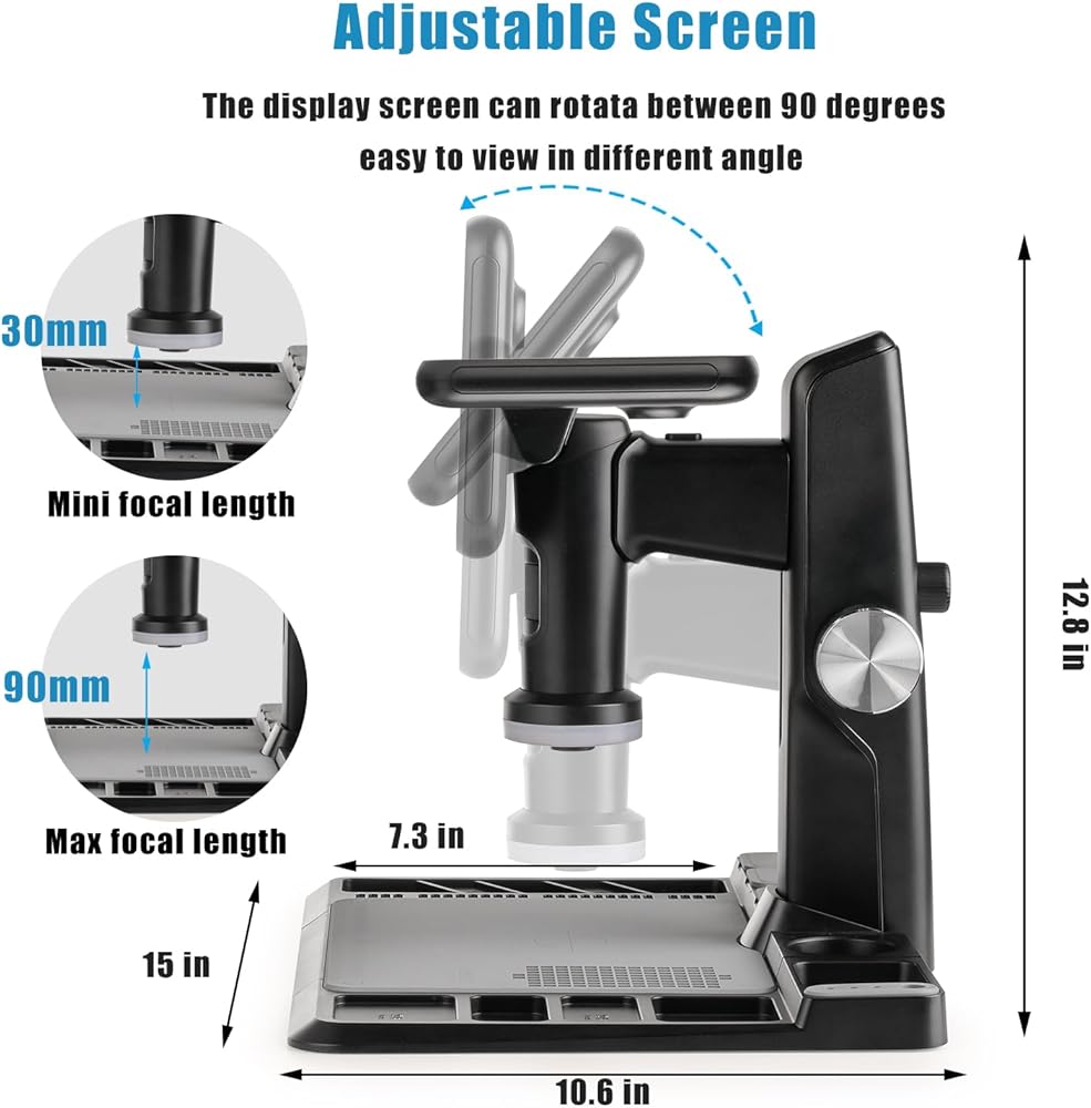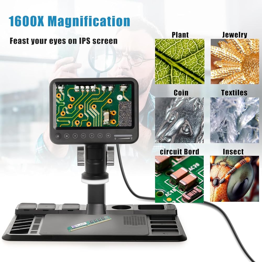 【استخدام واسع】المجهر الرقمي لإصلاح Amoper مناسب لتجميع إلكترونيات اللحام أو إصلاح لوحة الدائرة الإلكترونية. تكبير 1600X في الهاتف الخلوي، والكمبيوتر المحمول، والكمبيوتر، والكاميرا، والساعة/الساعة، واللعبة الذكية، والنظارات، والعملات المعدنية، والمجوهرات، والطوابع. إنها ليست مجرد أداة ولكنها أيضًا هدية مثالية للبالغين واللحام وعمال الصيانة وكبار السن والهواة.