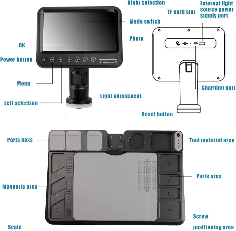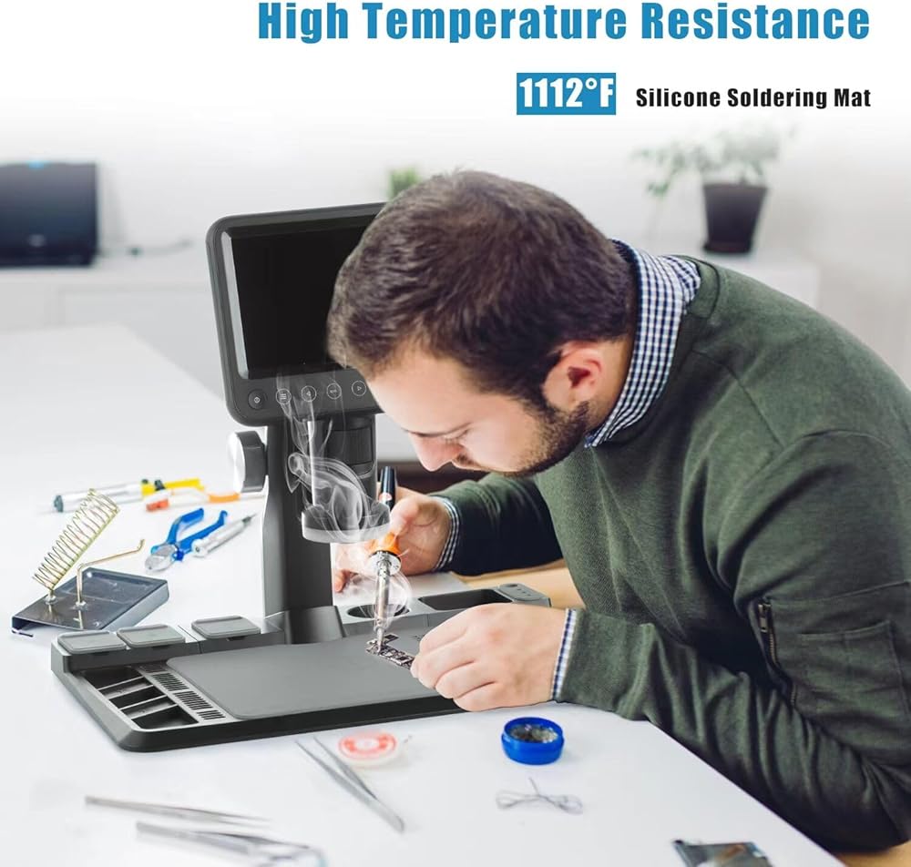 【منضدة إصلاح احترافية】يأتي مجهر اللحام الخاص بنا مع حصيرة إصلاح سيليكون مغناطيسية مقاومة لدرجة حرارة 1112 درجة فهرنهايت، ووضع 108 براغي، ومسطرة مقياس مدمجة في السجادة (0 ~ 180 سم). تأتي طاولة العمل أيضًا مع فتحات مغناطيسية متعددة لتصنيف شرائح IC والأجزاء الصغيرة والمسامير لسهولة التخزين، حتى تتمكن من إكمال مهمة اللحام الخاصة بك بسهولة.