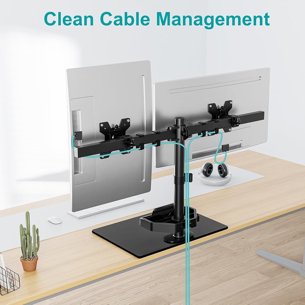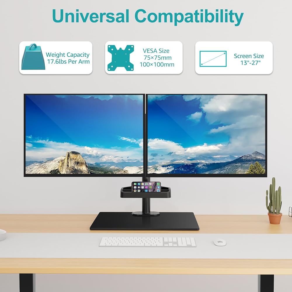 Wide Compatibility - The dual monitor arm supports most 13 17 19 22 23 24 27 flat/curved monitors weighing up to 17.6 lbs each. VESA patterns of 75x75mm or 100x100mm. Use the quick-release VESA mount to effortlessly attach your monitors. Cable management clips help keep cables neat and organized