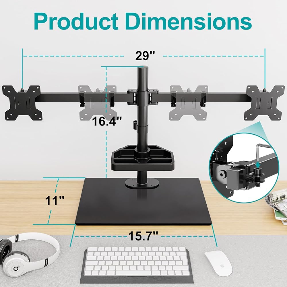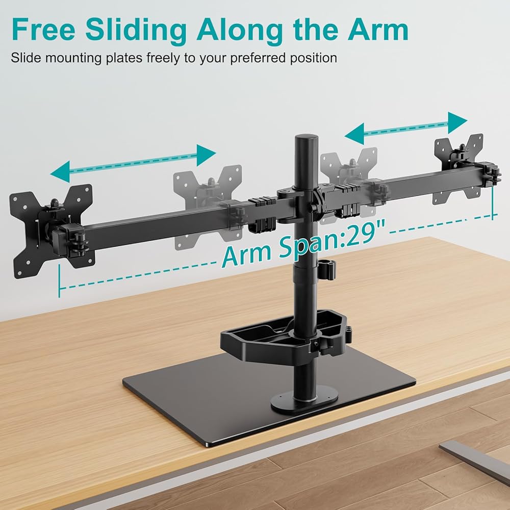 Practical Design - The monitors can be shifted left and right along a 29" arm and ensures perfect alignment between two monitors. Comes with a storage shelf, the monitor desk mount can hold your earphones, cell phone, pens and so on. Helps you keep your desktop organized and tidy