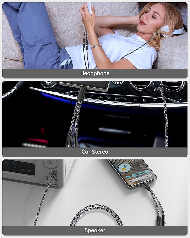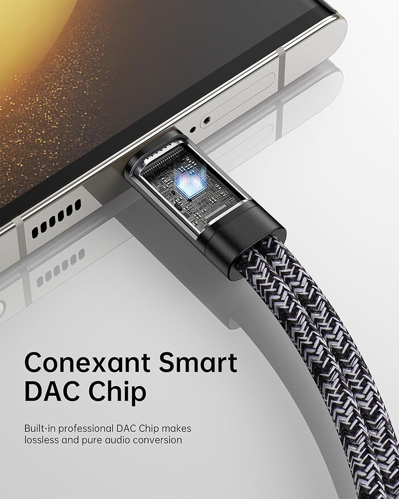 • التوصيل والتشغيل: لا حاجة لمحرك الأقراص. يدعم هذا الشاحن ومحول AUX إلى USB C DAC مع 16 بت/192 كيلو هرتز أو 24 بت/96 كيلو هرتز، ADC مع إخراج بدون فقدان 16 بت/48 كيلو هرتز، ويوفر صوت واضح بدون انقطاع عالي الجودة، مما يمنحك رحلة وتجربة موسيقية رائعة. يتطابق الصوت والشحن USB C بشكل مثالي مع جميع الأجهزة التي تحتوي على كابلات مساعدة عادية مقاس 3.5 مم لتوصيلها، مثل سماعات الرأس ومكبرات الصوت وأجهزة ستريو السيارة/المنزل وسماعات الأذن وسماعات الرأس وHi-Fi.