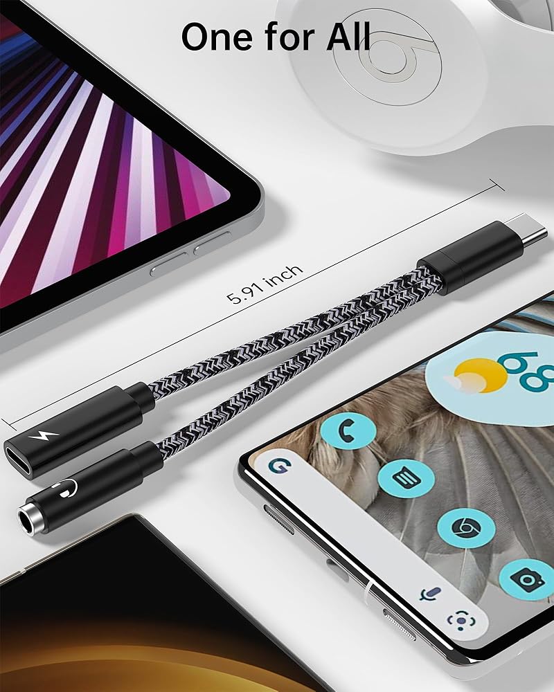 • موزع صوت وشحن Android: مقسم 3.5 ملم إلى USB C، محول سماعة رأس من النوع C وشحن متوافق مع iPhone 15/15 Plus/15 Pro/15 Pro Max، Samsung S23 Ultra/S23+/S23، S22 Ultra/S22+/S22، S21 Ultra/S21+/S21، S20 Ultra/S20+/S20 Z Flip، S10/S10+، Note 10/Note 20، A54 A14 5G A24 4G A13 A34 A53 A03s، Z Fold 5/4/3/2، Z Flip 5/4 /3/2، جوجل بيكسل 8/8 برو/7/7a/7 برو/6a/6/6 برو/5/5a/4/4 XL/3/3 XL/2/2 XL، آيباد برو/آيباد إير /iPad mini 6، وHUAWEI Mate 30/20/10 Pro/P40/P30 Pro/P20، وLG والمزيد.