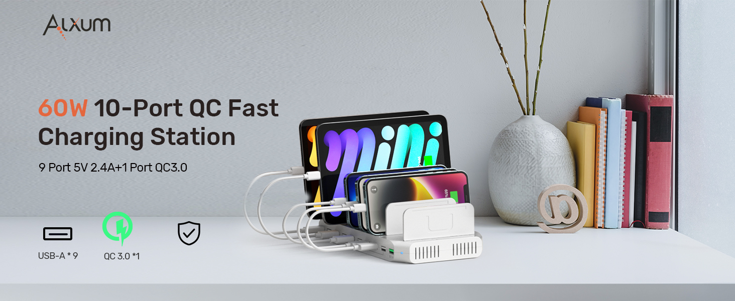محطة شحن USB متعددة: يمكن لمحطات شحن محطة شحن USB ذات 10 منافذ شحن أجهزة متعددة بما في ذلك أجهزة iPhone وiPad وساعات Android وأجهزة Airpods اللوحية وحلول Kindles. مثالي للعائلات والمدارس والمكاتب وغيرها من المناطق ذات الازدحام الشديد حيث تحتاج أجهزة متعددة إلى الشحن في وقت واحد. (كابل الشحن غير متضمن)