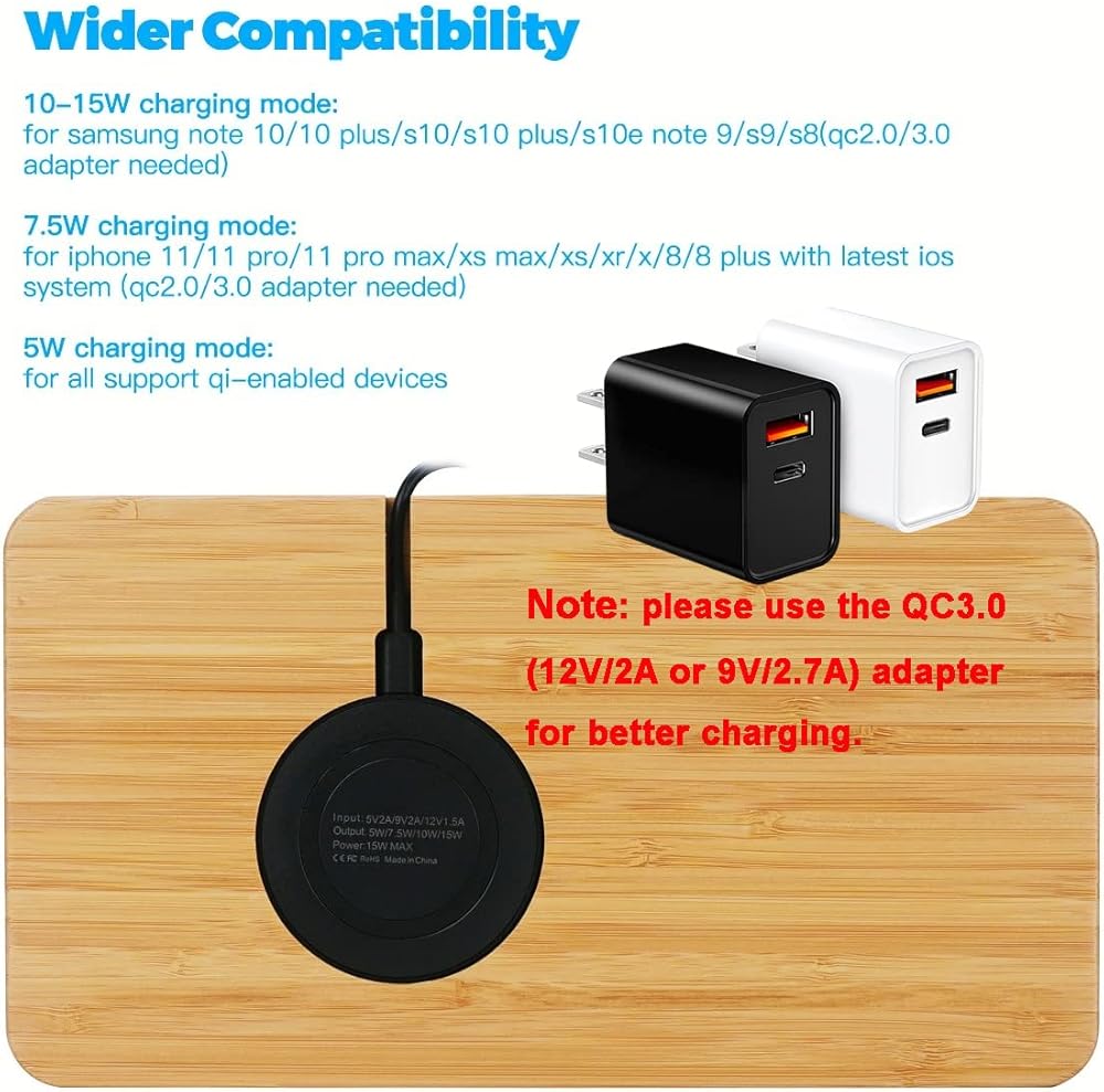 【متوافق على نطاق واسع مع أجهزة متعددة】وضع الشحن 10 واط لسامسونج، وضع الشحن 7.5 واط لايفون، وضع الشحن 5 واط يعمل على أي هاتف اندرويد يدعم تقنية كيو اي