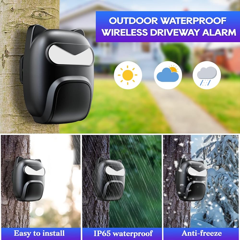 جهاز انذار لاسلكي طويل المدى من بيستون مقاوم للطقس الخارجي يدعم نغمات رنين مختلفة، جهاز استقبال واحد و2 مستشعر حركة مقاوم للماء IP65، نظام انذار امن داخلي وخارجي