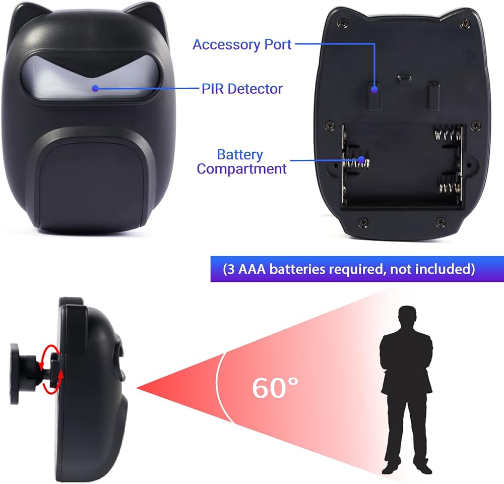 مستشعر مقاوم للماء بتصنيف IP65 لمقاومة المياه والغبار، يتميز مستشعر الحركة الجديد بتأثير ممتاز مقاوم للماء بدرجة IP65، والذي يمكن أن يعمل بشكل مستمر في الهواء الطلق. تتطلب 3 بطاريات ايه ايه ايه (غير متضمنة) وهي سهلة التركيب، فقط قم بتركيب القاعدة على الحائط باستخدام البراغي واضغط على المستشعر في القاعدة. يمكن تدوير واجهة المستشعر 360 درجة لسهولة ضبط منطقة الكشف.
