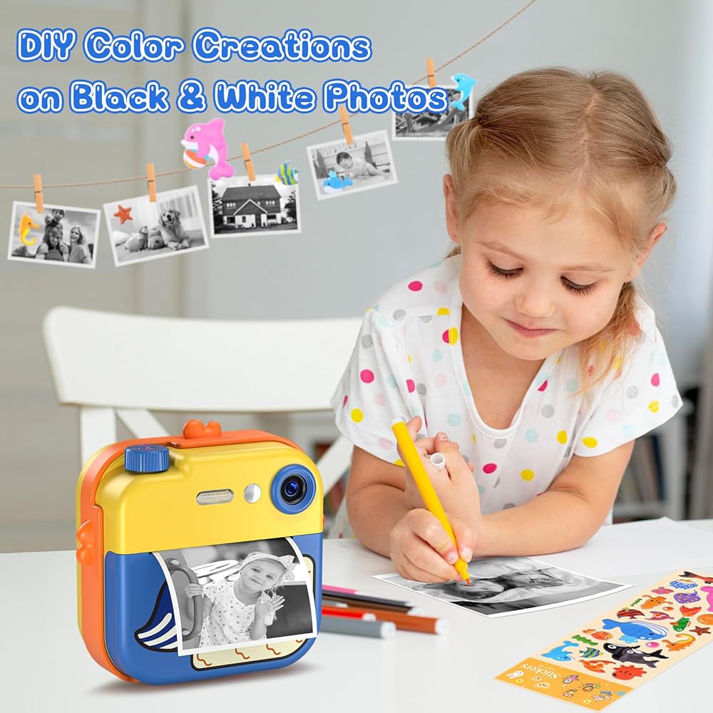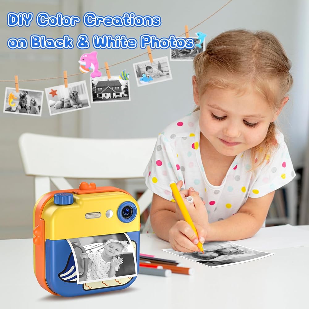 【طباعة فورية لكاميرا الأطفال】: كاميرا LETSHAHA الفورية عبارة عن كاميرا طباعة رقمية وفورية هجينة مصممة خصيصًا للأطفال. وبضغطة زر واحدة فقط، يمكنهم بسهولة التقاط صور ملونة وطباعة الصور بالأبيض والأسود على الفور. لا تسمح هذه الكاميرا الممتعة للأطفال بالتقاط صور مرحة فحسب، بل تتيح لهم أيضًا الاستفادة من إبداعهم وخيالهم من خلال تصميم صورهم حسب محتوى قلوبهم.