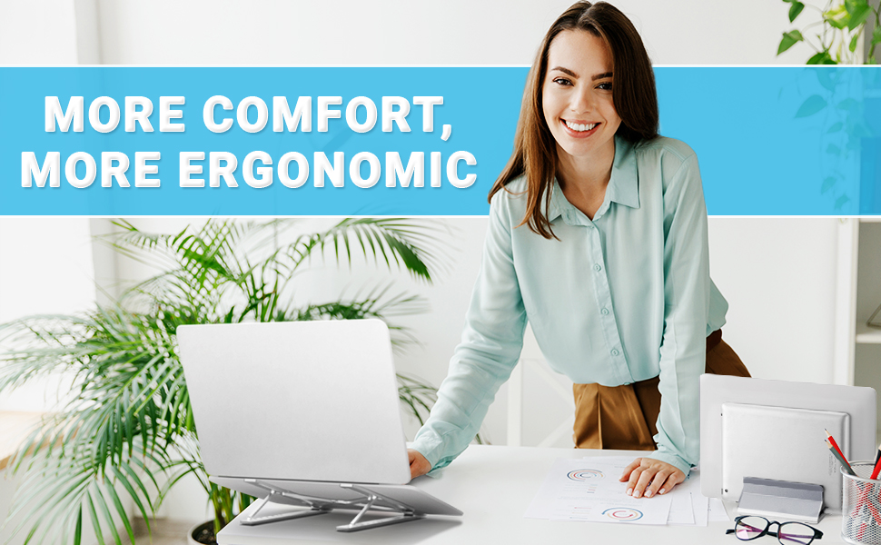 قابل للتعديل مع حلقات قفل - يحتوي حامل جهاز الكمبيوتر المحمول هذا على حلقات قفل حتى تتمكن من استخدامه لتغيير العرض من الرفيع إلى السميك أو العكس؛ اضبط الفتحات بسرعة وفقًا للحجم المطلوب بدون أداة