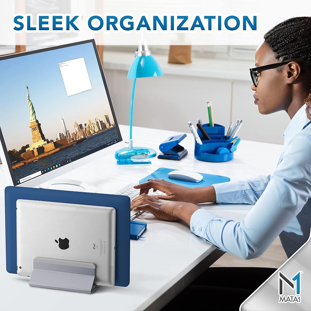 حامل مزدوج - احصل على حامل سطح الطاولة ذو الفتحات المزدوجة هذا لأجهزة متعددة مثل أجهزة الكمبيوتر المحمولة أو الهواتف المحمولة أو أجهزة القراءة الإلكترونية أو الأجهزة اللوحية أو أجهزة الكمبيوتر المحمولة؛ مثالية للأشخاص المهتمين بتوفير المساحة لتنظيم مكاتبهم بشكل أنيق