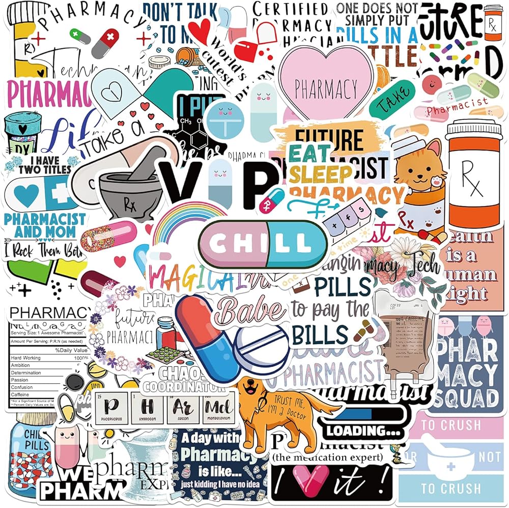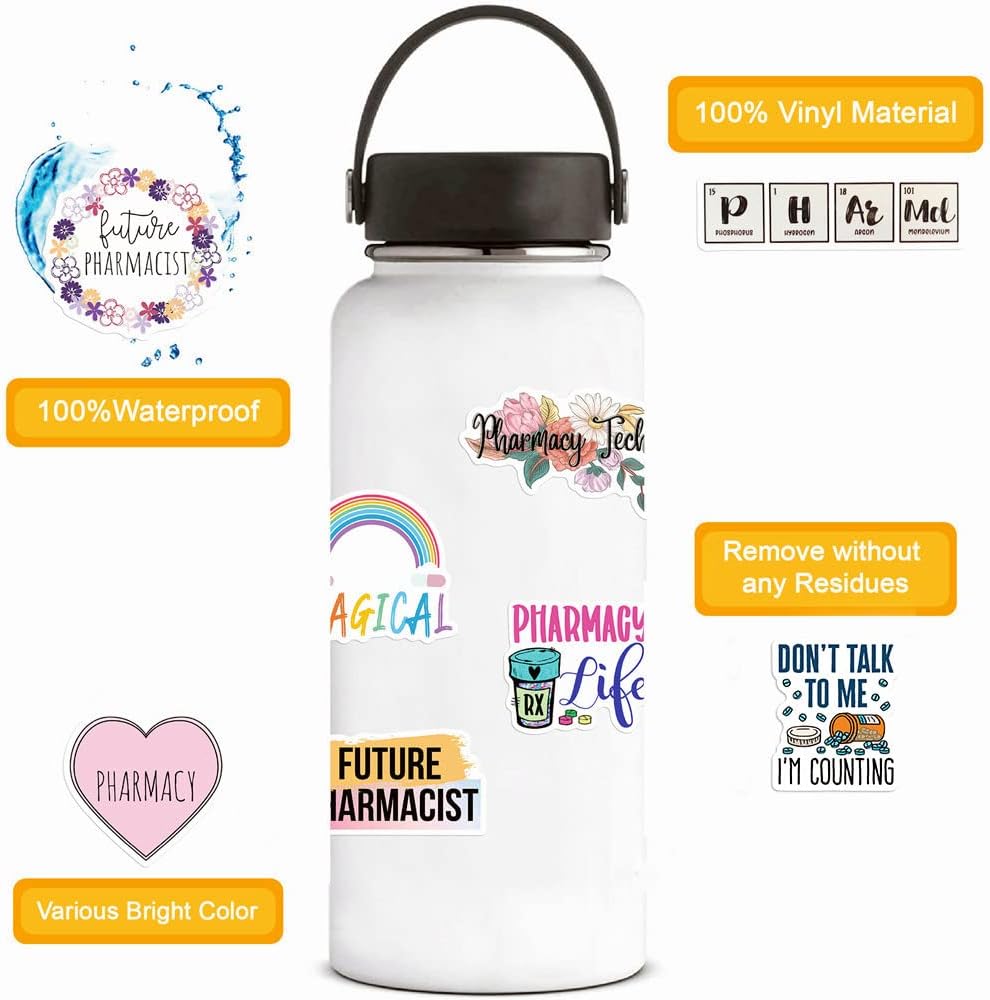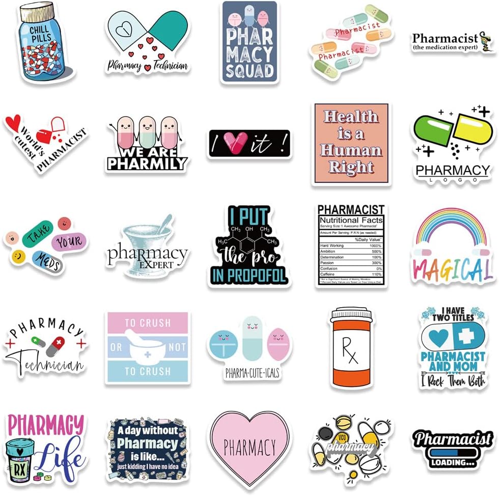 ملصقات صيدلانية، 50 قطعة من ملصقات فينيل مقاومة للماء لزجاجات المياه واللابتوب والقبعة الصلبة والامتعة والسيارة وهدايا للنساء والرجال وزملاء العمل او طلاب التخرج