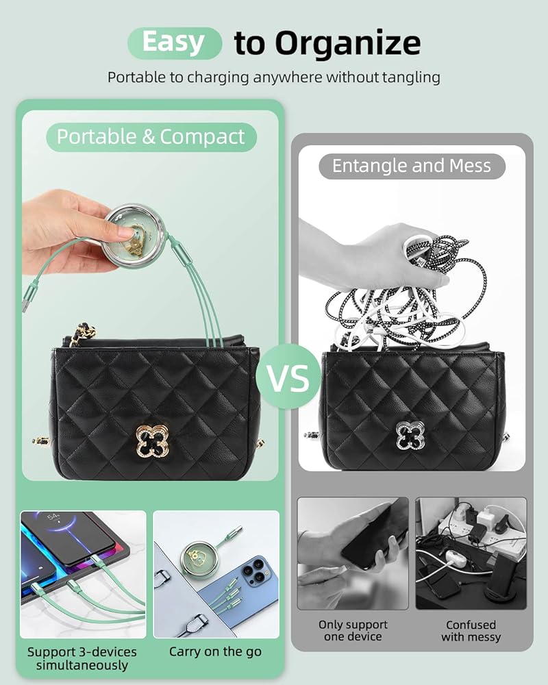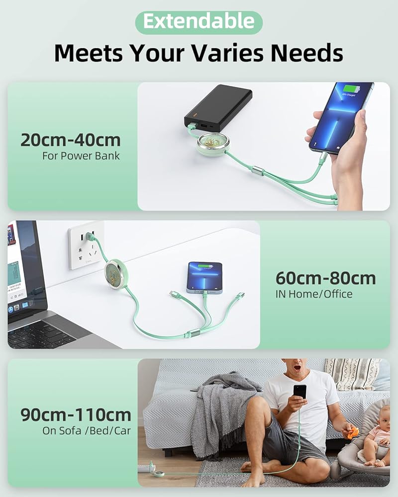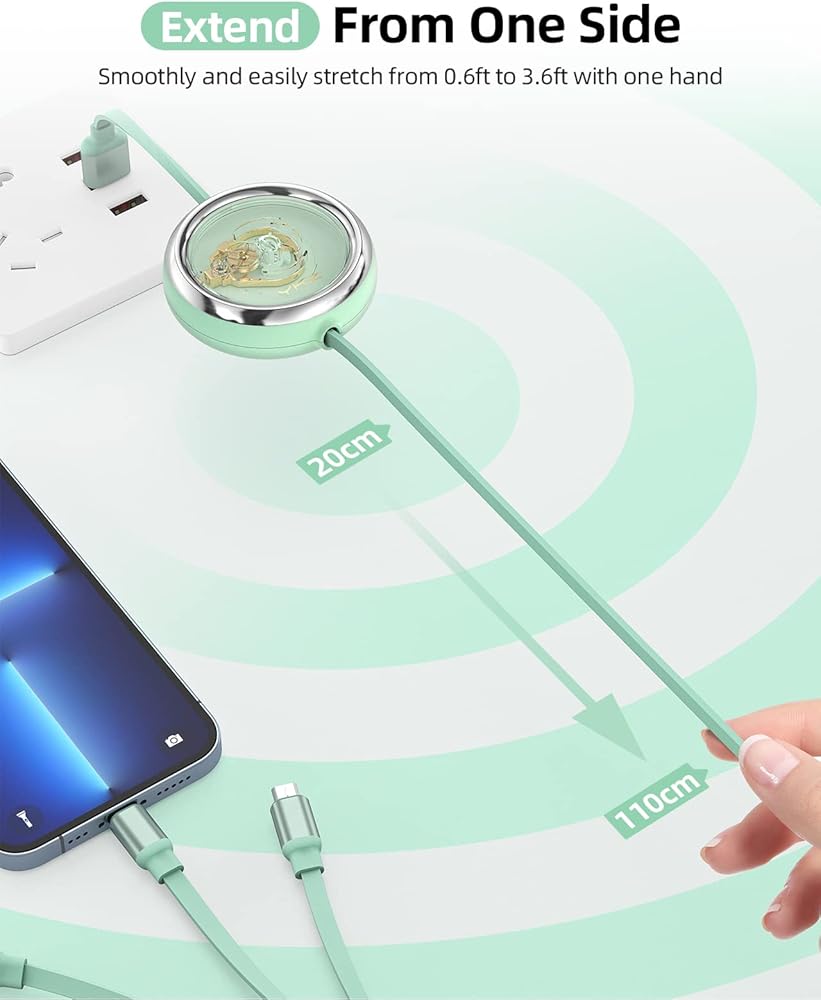 New Retracted, More Smooth & Convenient - New Upgraded retracting mechanism, Just pull "ONE" side to stretch or retract, more convenient and smoothly compared with others needs stretch by both side. Freely stretch or retract from 20cm(0.6ft) to 110cm(3.6ft) to meet your varies charging needs. Retractable mini size only 2"*2" when retracted, easy to place in your handbag, backpack, or pocket. Portable for charging anywhere.