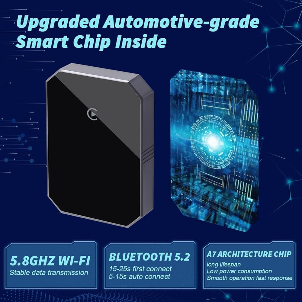 أداء لاسلكي سلس: قل وداعًا للأسلاك المتشابكة ومرحبًا بمستقبل اتصال السيارة. يستغل المحول الخاص بنا قوة Bluetooth 5.2 وشبكة Wi-Fi بسرعة 5.8 جيجا هرتز، مما يضمن اتصالات سريعة للغاية وتدفقًا متواصلًا. ملاحظة: تأكد من اتصال غير منقطع عن طريق الحفاظ على وظائف Bluetooth وWi-Fi في هاتفك ممكنة طوال الاستخدام. افصل الاتصال عن الأجهزة الأخرى لضمان أفضل جودة اتصال وتشغيل سلس.