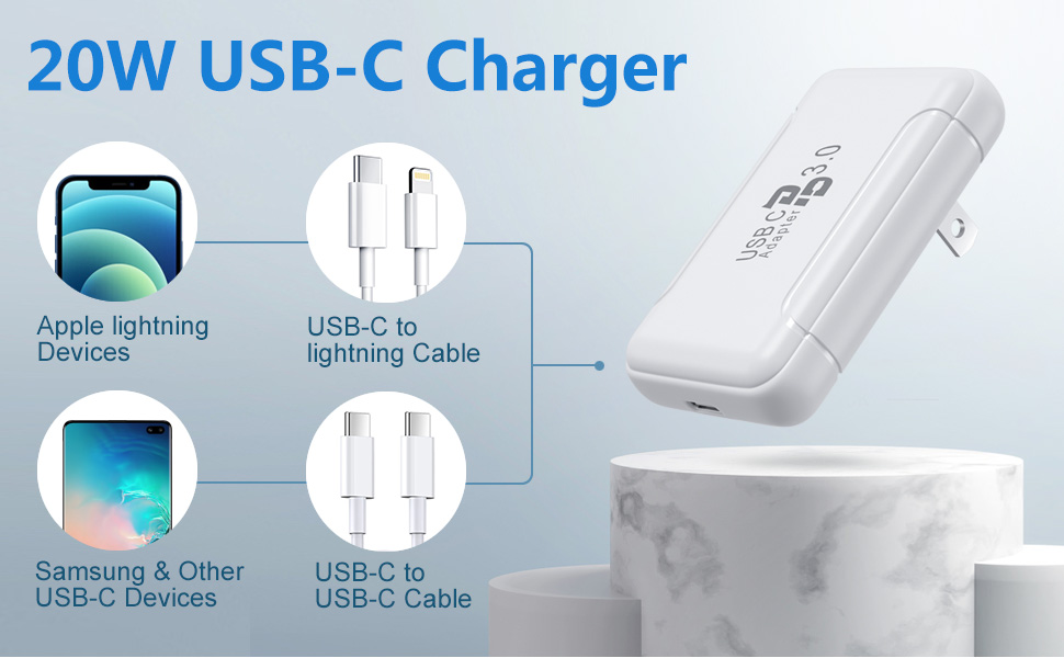 توصيل طاقة 20 وات 3.0: شاحن الحائط USB C مجهز بمنفذ USB C PD 3.0 الذي يمكنه توفير شحن عالي السرعة يصل إلى 20 وات لسلسلة iPhone 14 13 Pro Max الجديدة، شحن سريع من 10% إلى 80% في حوالي 40 دقيقة. ما عليك سوى الاستمتاع بالجيل الجديد من تقنية الشحن السريع Power Delivery 3.0! ستكون كتلة الشحن بمنفذ C هذه شاحنًا بديلاً رائعًا لمحول الشحن السريع الأصلي الخاص بشركة OEM!