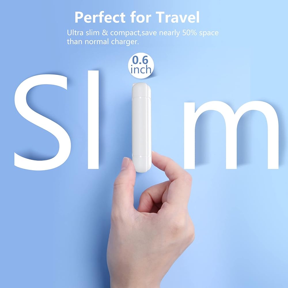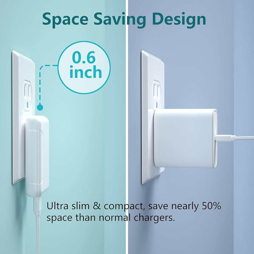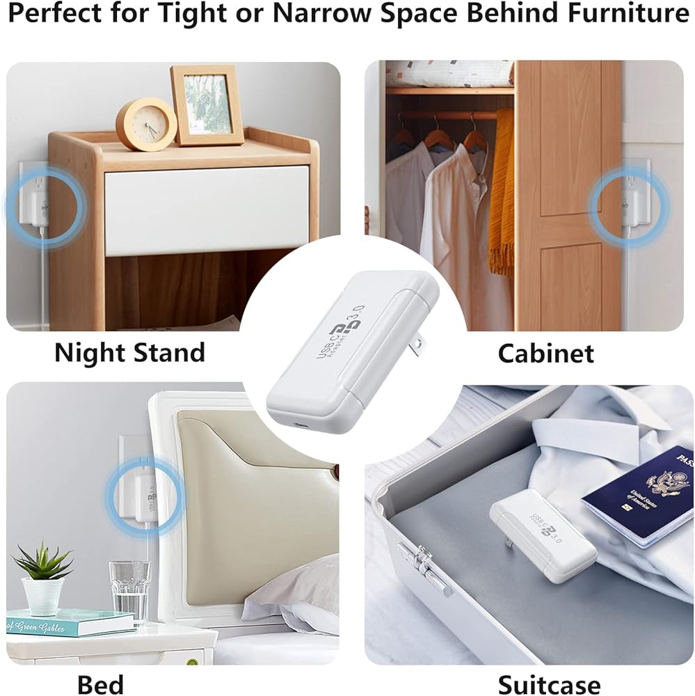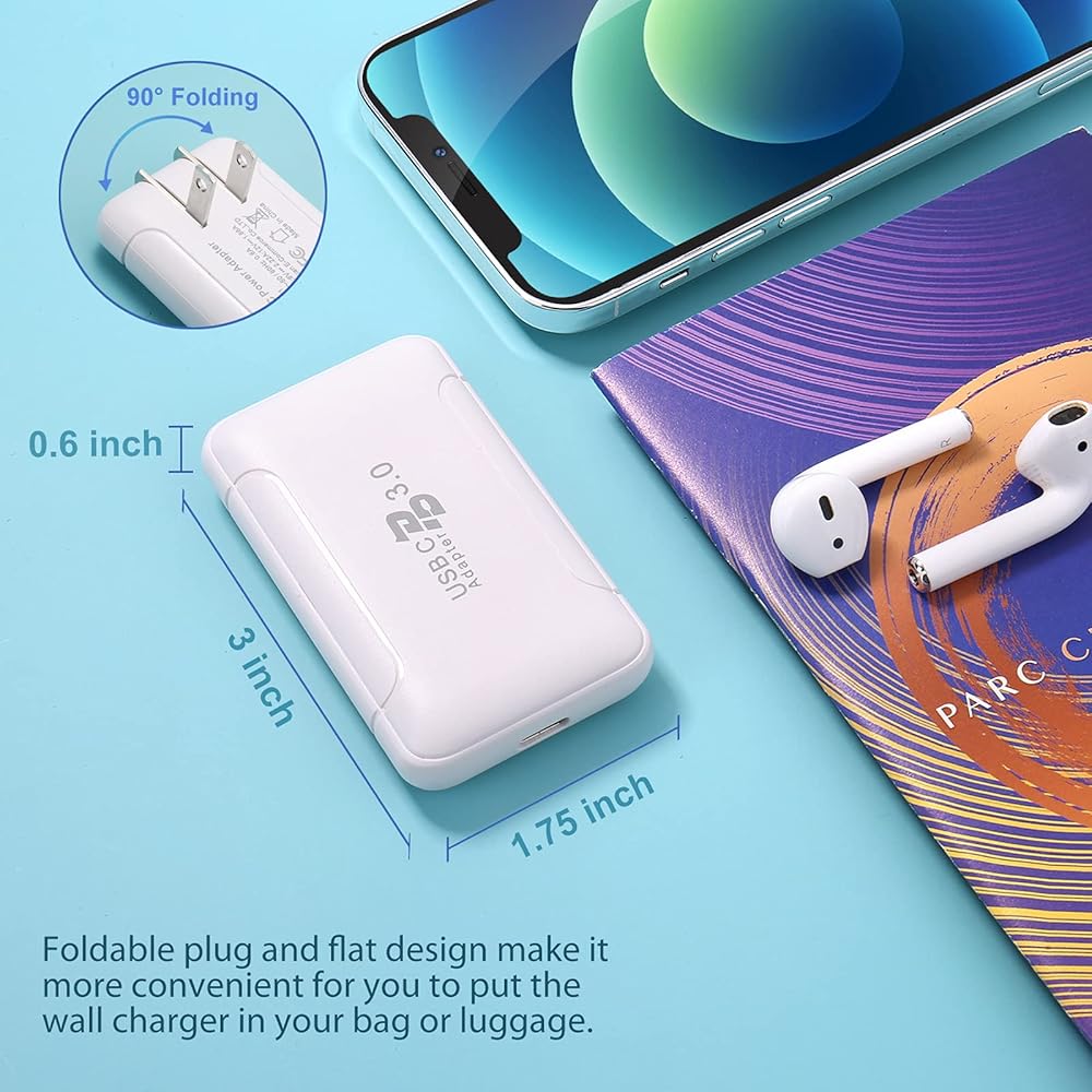 قابس حائط USB C مسطح فائق النحافة: تم تصميم شاحن الحائط USB C السريع المدمج هذا خصيصًا لمنفذ المساحة الضيقة أو الضيقة خلف الأثاث في منزلك. قم بتوصيلها خلف سريرك أو أريكتك أو الألواح الأمامية أو المنضدة أو الطاولات الجانبية أو خزانة الملابس أو أي أثاث، يمكنك توفير مساحة كبيرة في المبنى الخاص بك. مع قابس قابل للطي بسمك 0.6 بوصة فقط، يعد قابس الحائط من النوع C مثاليًا أيضًا للسفر أو رحلة العمل.