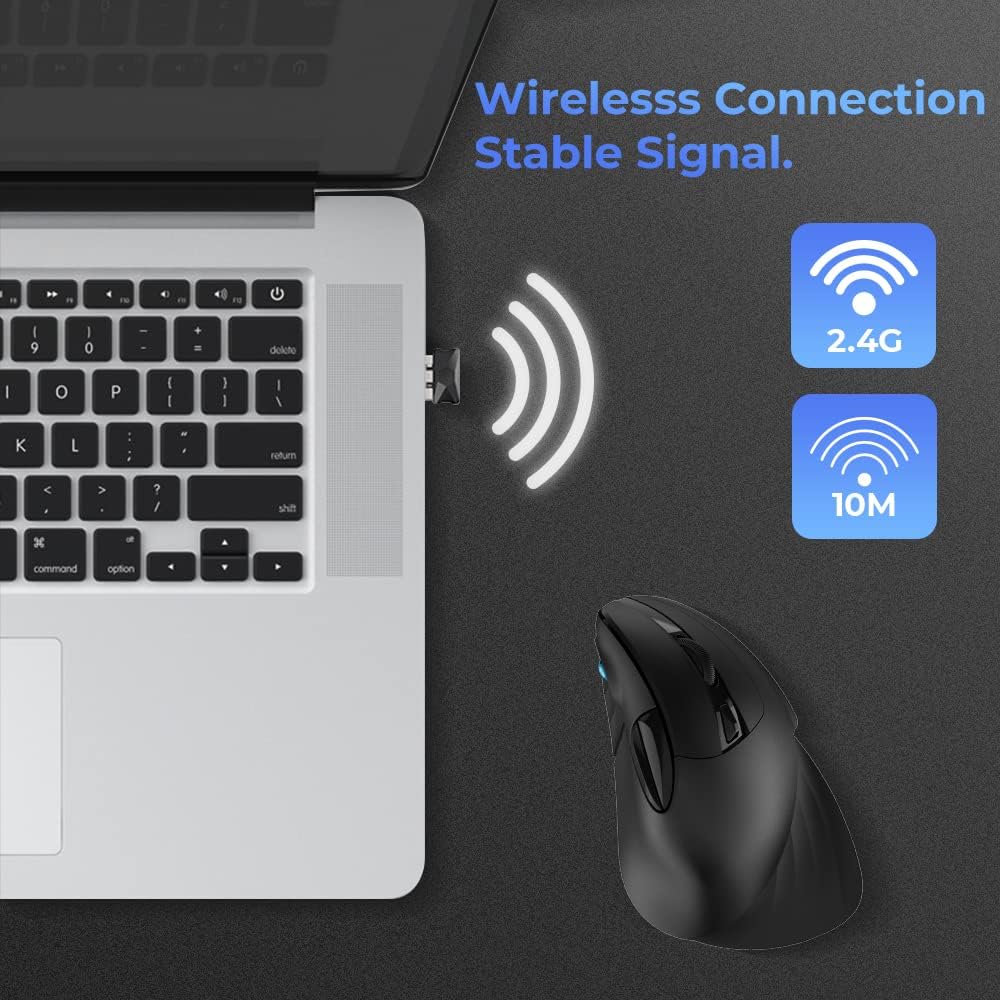 • 【2.4 جيجا هرتز لاسلكي وضمان الجودة】لا يوجد سلك فوضوي، نقل لاسلكي 2.4 جيجا يصل إلى 10 أمتار. لقد اجتاز ماوس DAREU اللاسلكي الرأسي عمليات فحص الجودة الصارمة، وهو أكثر متانة. نحن نقدم ضمان لمدة سنة واحدة. إذا كانت لديك أي مشكلات، فلا تتردد في الاتصال بنا في أي وقت وسنساعدك.