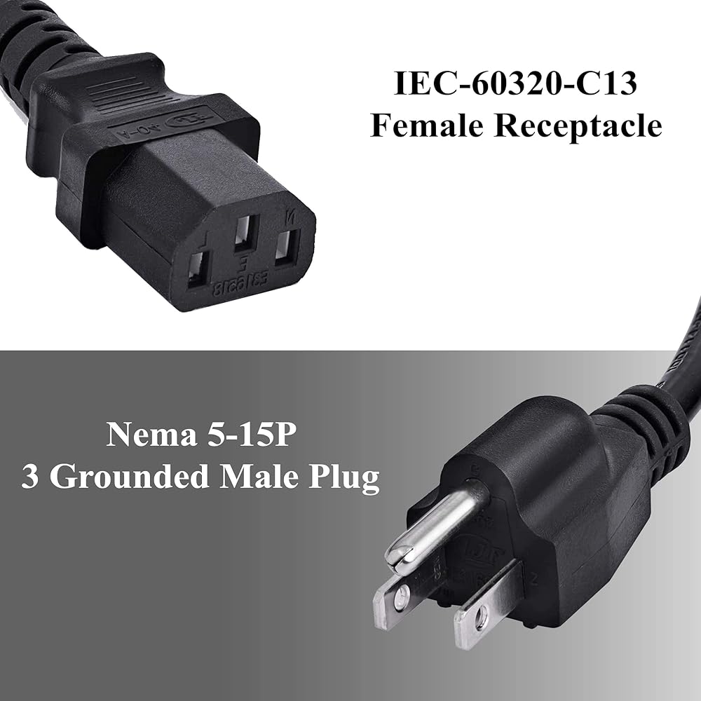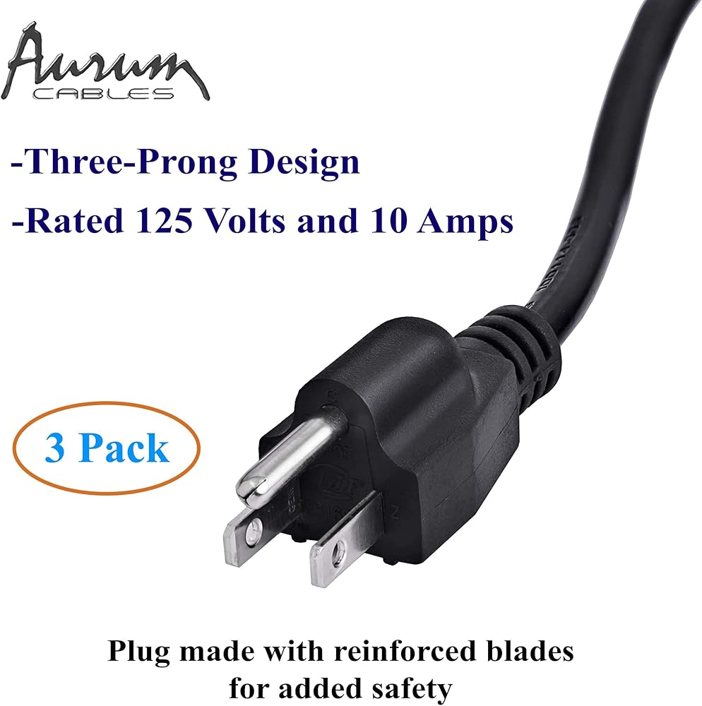 كابلات أوروم بطول 6 أقدام. سلك تمديد طاقة الكمبيوتر 18AWG، 10A هو الحل المثالي البسيط وبأسعار معقولة لتمديد الطول إلى جهاز الكمبيوتر المكتبي الخاص بك، الكمبيوتر الشخصي، الشاشة، الطابعة، الماسح الضوئي وما إلى ذلك مع قابس ذكر مؤرض 18Awg SJT NEMA 5-15P 3 على طرف واحد متصل بأي مؤرض مصدر طاقة منفذ ومقبس موصل طاقة الكمبيوتر الشخصي بموصل IEC C13 3 على الطرف الآخر المتصل بجهاز الطاقة الخاص بك.