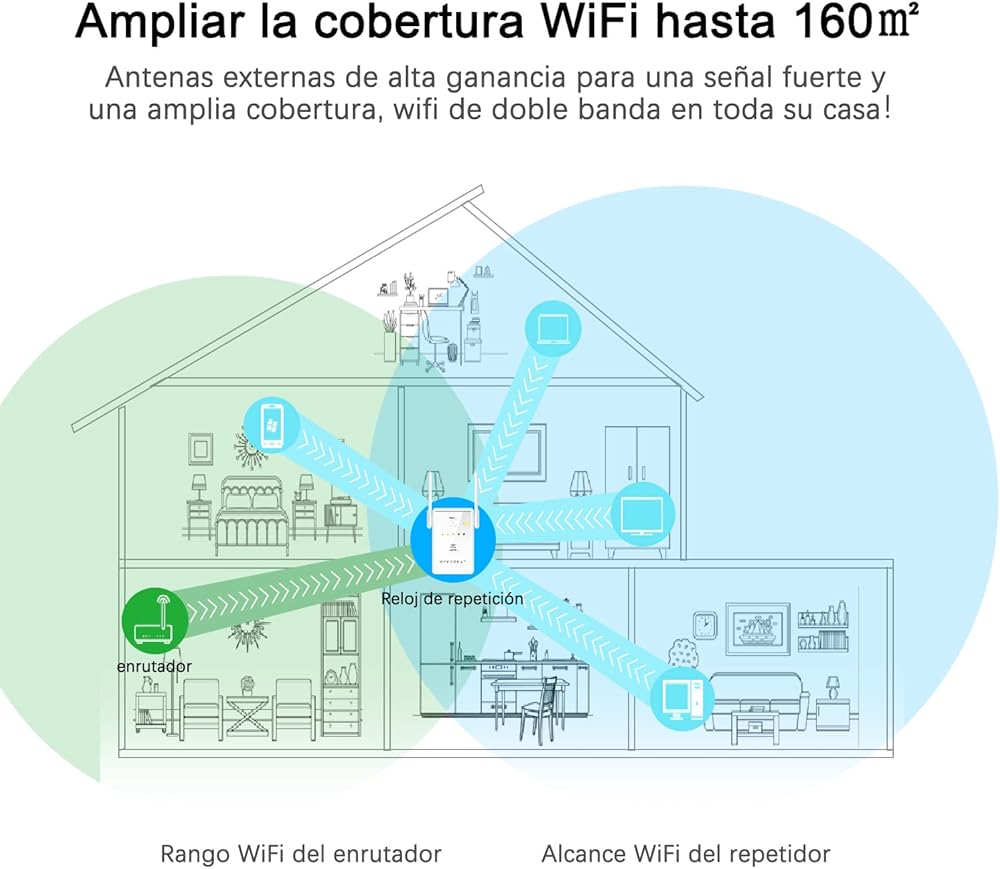 ✈【تصميم ذكي】يساعدك مؤشر الإشارة الإنسانية LED على العثور على أفضل مكان لوضع مكرر الواي فاي. 4 هوائيات عالية الكسب توفر نقل أفضل للإشارة. يتيح لك منفذا إيثرنت الحصول على رابط سلكي.
