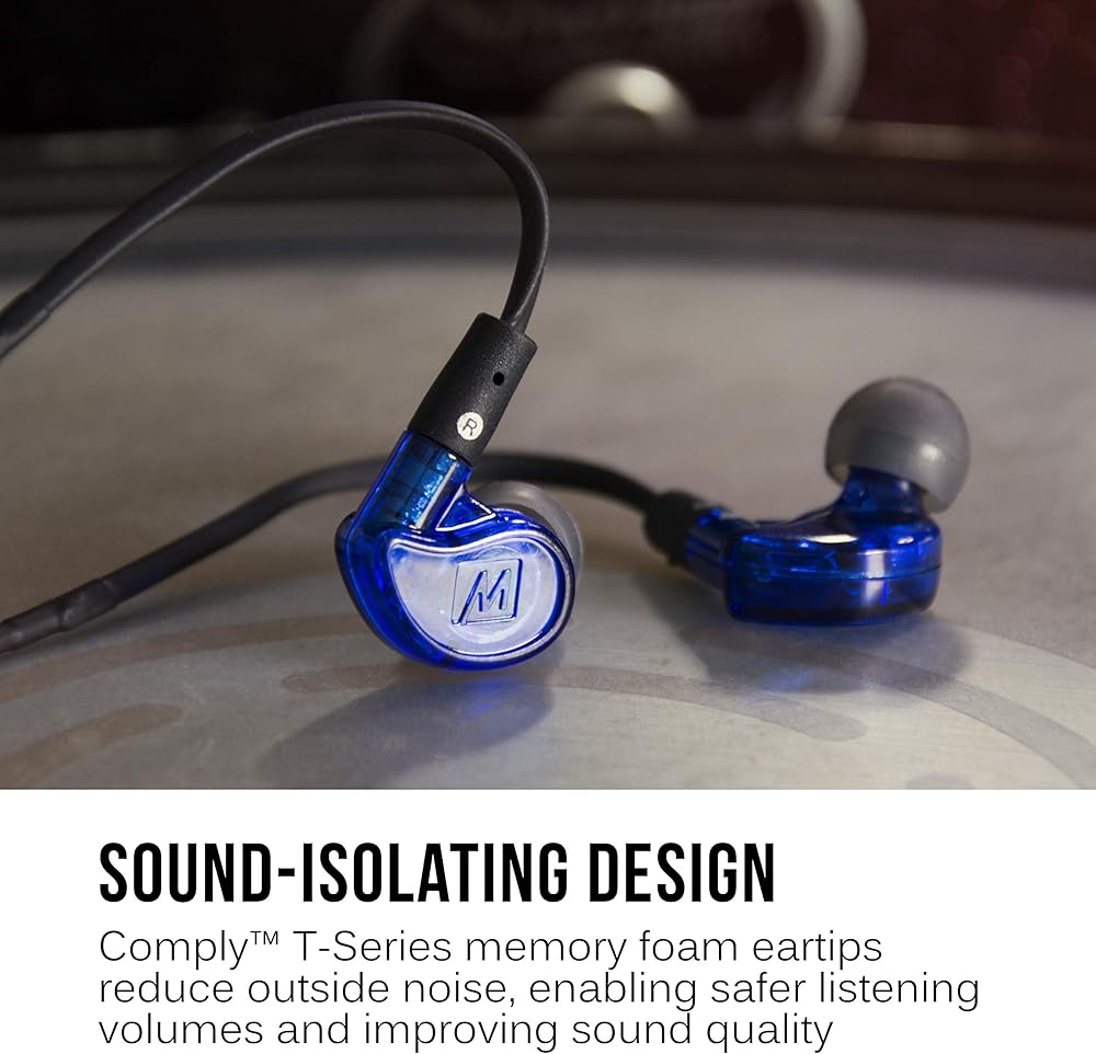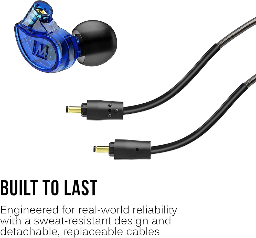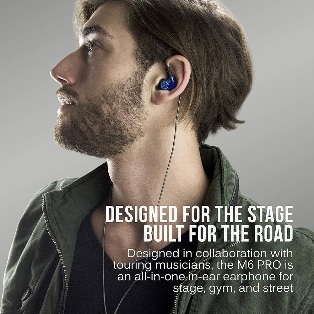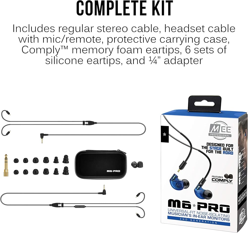 سماعات أذن MEE audio M6 PRO داخل الأذن للموسيقيين، طراز الجيل الثاني مع صوت مطور، وخطافات أذن سلكية للذاكرة وكابلات قابلة للاستبدال، سماعات أذن احترافية عازلة للضوضاء، سلكان متضمنان (أزرق)