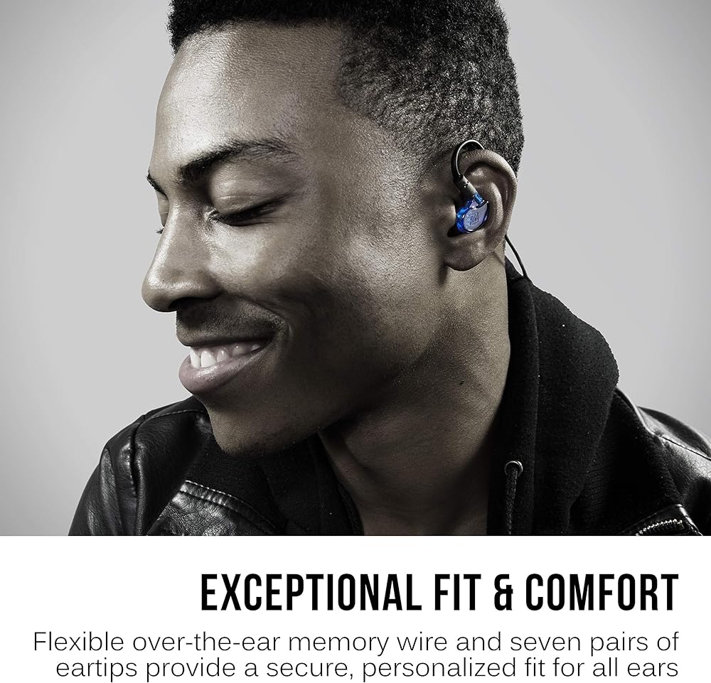 راحة طوال اليوم مع ملاءمة آمنة فوق الأذن، وخطافات أذن مرنة "سلك الذاكرة" وسبعة أزواج من أطراف الأذن بما في ذلك أطراف ميموري فوم من سلسلة تي من كومبلي لعزل إضافي للضوضاء