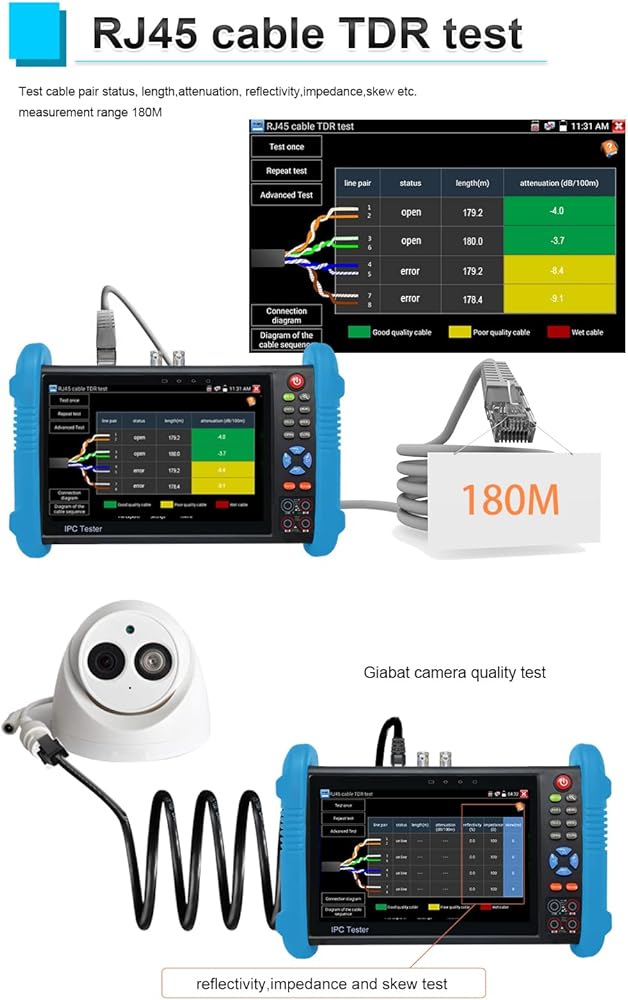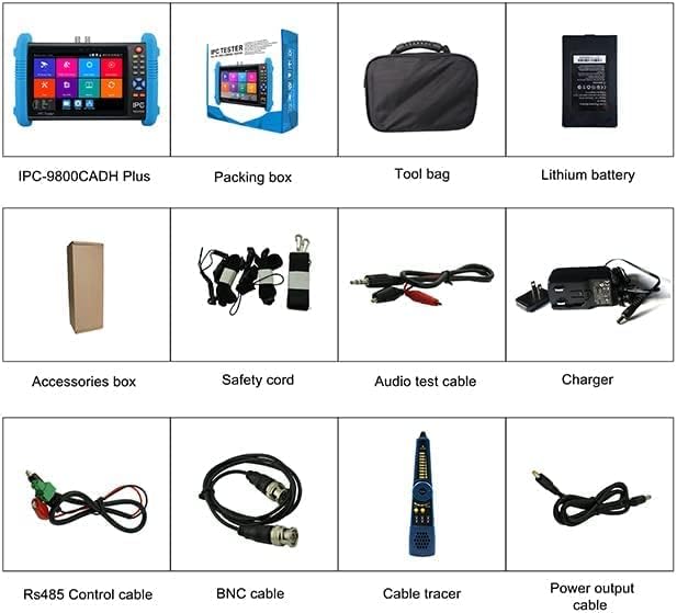✅【معلمات اختبار كاميرا IP 】IPC-9800CADH Plus ● شاشة Retina تعمل باللمس مقاس 7 بوصة، دقة 1920*1200. يدعم تتبع الكابل الرقمي، ويدعم H.265، H.264، 4K، OVIF، POE، WiFi، 10/100/1000M Ethernet، RS485، إدخال الصوت. اختبار الكاميرا المحورية عالية الدقة.