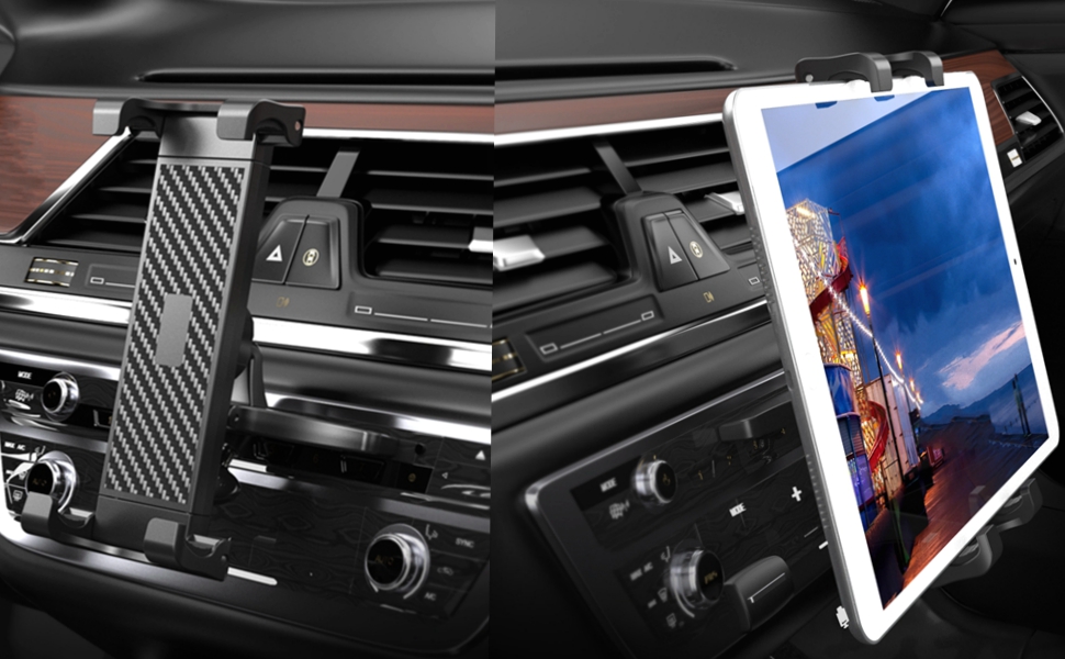 • [دوران 360 درجة:] مع رأس كروي دوار، زاوية سهلة الضبط، قابلة للدوران لأعلى وأسفل قابلة للتعديل للحصول على أفضل زاوية رؤية، تحمل أجهزة التابلت أو الهواتف المحمولة عموديًا أو أفقيًا في السيارة