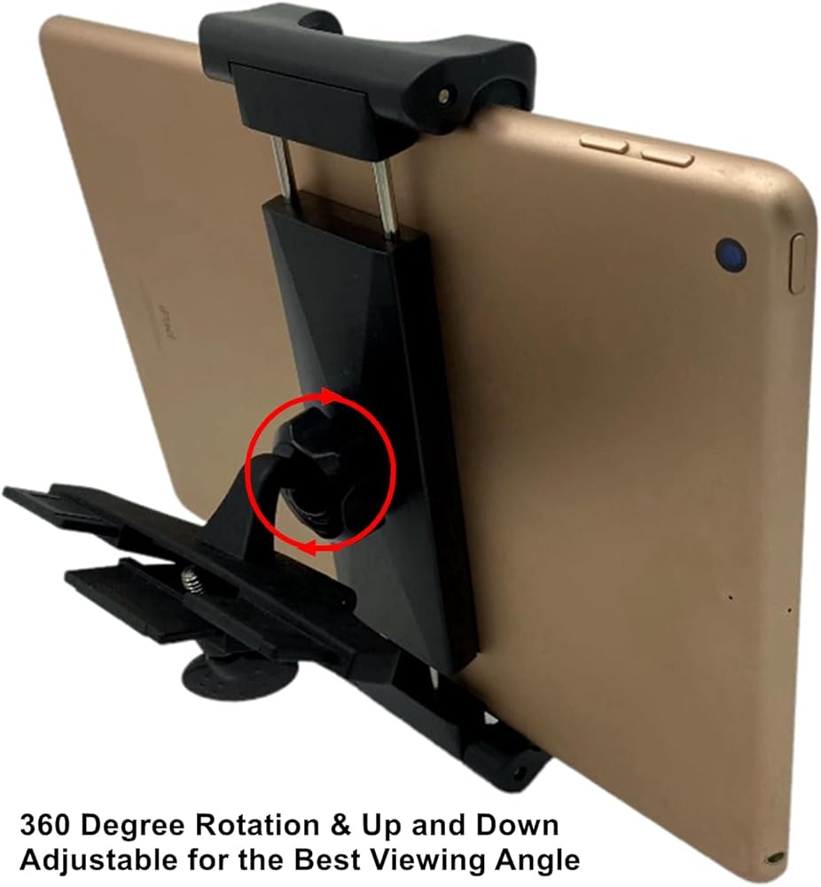 ضيفار حامل فتحة سي دي للتابلت، مشغل سي دي للسيارة والشاحنة، حامل الهاتف الذكي، حامل حامل للتابلت 5.5 انش - 13 انش، دوران قابل للتعديل 360 درجة، مشبك تابلت ثابت